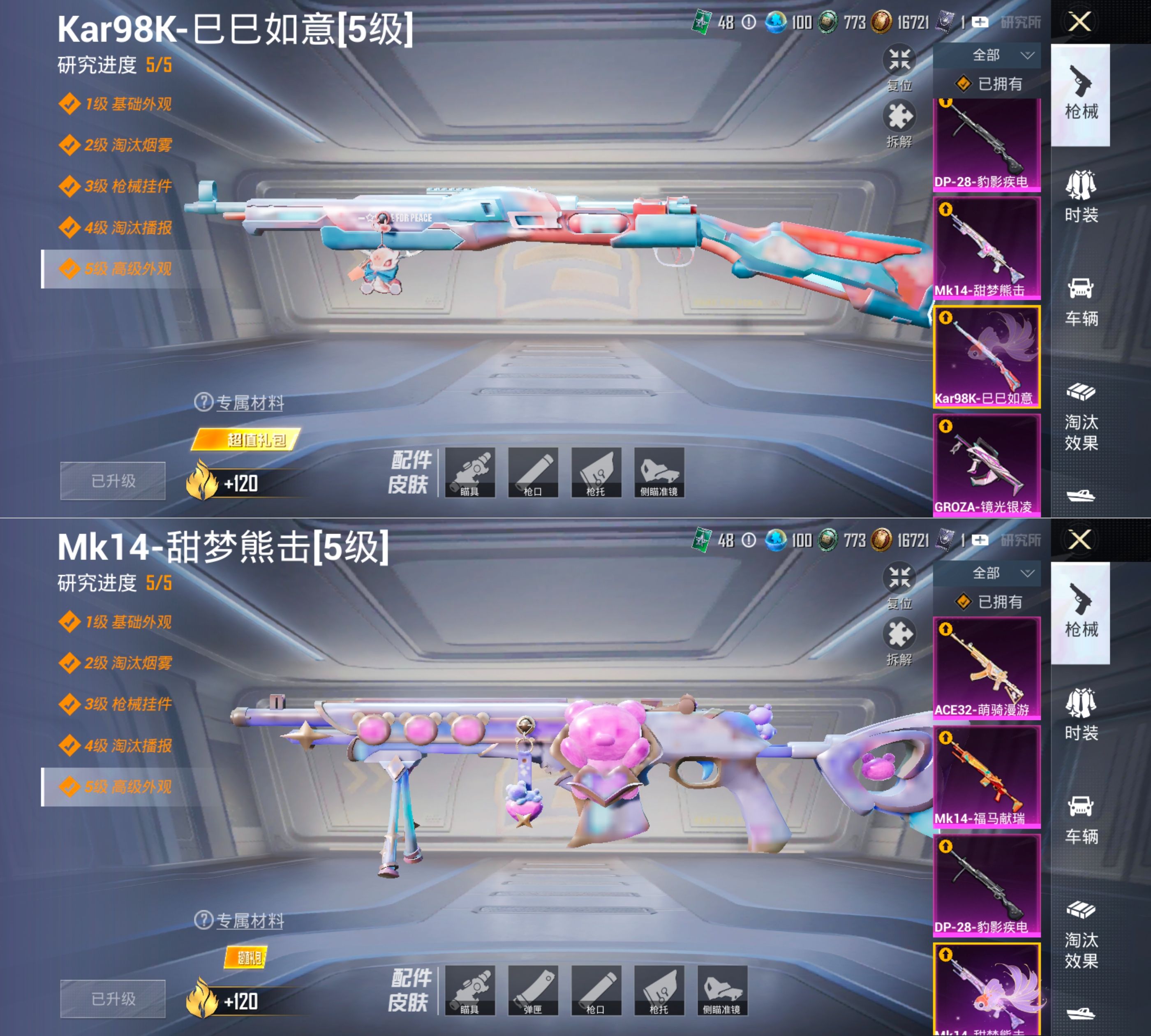 DSH2458【可二次】安卓手Q-2粉装-6特效枪-109套装-192枪皮-7王牌印记-超级王牌5星-47066热力值【2粉装】角色-千金淑猫,星穹咏叹调【6特效枪】DP-28-豹影疾电[5级],GROZA-镜光银凌[5级],Kar98K-巳巳如意[5级],Mk14-福马献瑞[5级],Mk14-甜梦熊击[5级],ACE32-萌骑漫游[5级]【1稀有】小丑鱼【15飞行器】炫彩糖果飞行器,幻星舰长飞