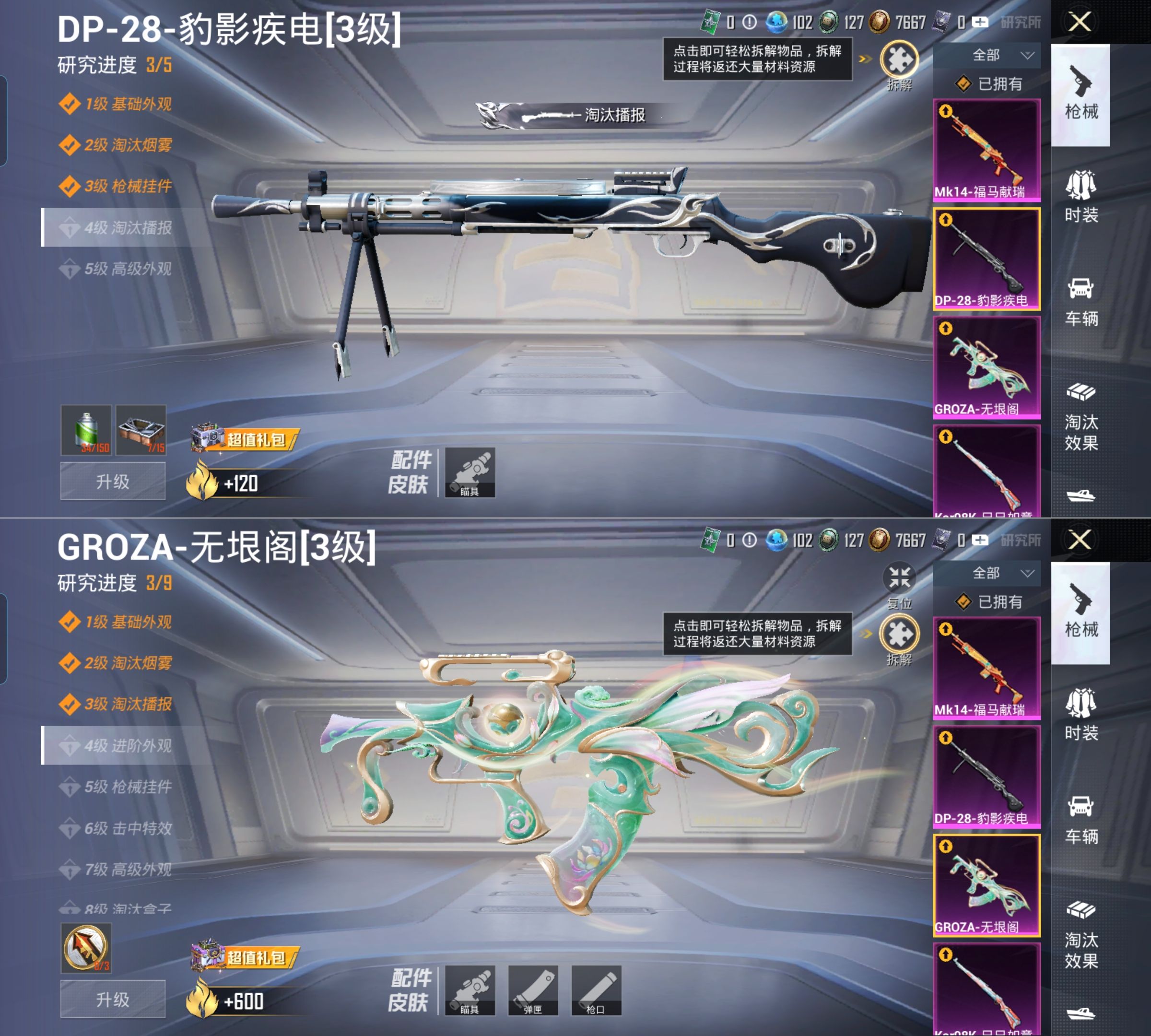 M1047533【女号3粉装-4特效枪】安卓手Q-3粉装-4特效枪-37套装-59枪皮-1王牌印记-不朽星钻Ⅱ-16355热力值【3粉装】角色-奇迹舞步 美雪,角色-虹云熊熊,角色-冰魄【4特效枪】Kar98K-巳巳如意[3级],Mk14-福马献瑞[5级],DP-28-豹影疾电[3级],GROZA-无垠阁[3级]【3飞行器】登顶巅峰飞行器,炫彩糖果飞行器,狂鲨锋刃飞行器【89其它衣服和枪皮】角色