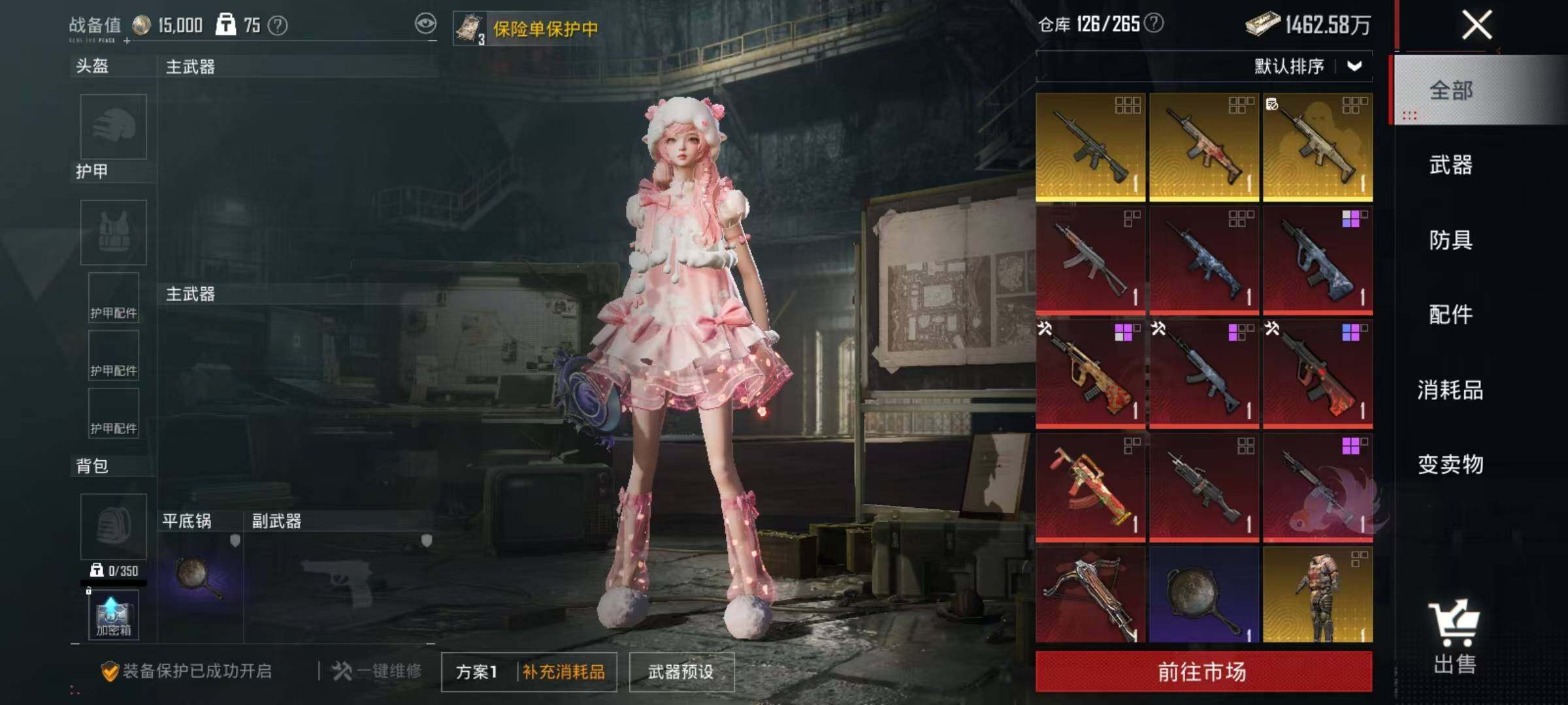 【粉色枪皮等级】:AUG-暖羊咩咩(五级),ACE32-萌骑漫游(五级),汤姆逊-热量炸弹(五级),Kar98K-巳巳如意(五级),Mk14-甜梦熊击(五级),Mk14-福马献瑞(五级),DP-28-豹影疾电(五级),MG