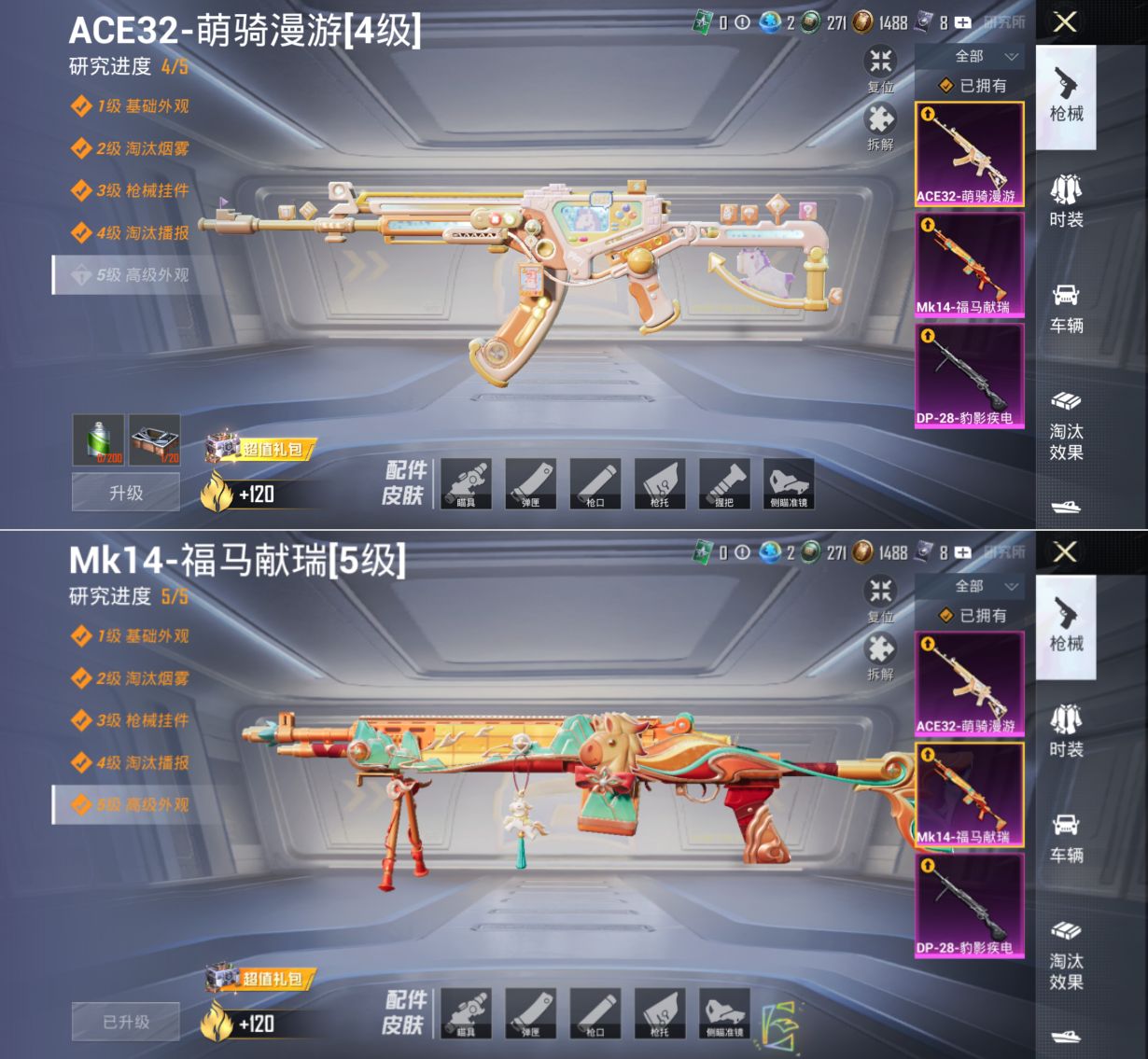 M1047330【身法号1载具-3特效枪TT战队服,暗影哥特】无二次苹果手Q-1载具-3特效枪-39套装-64枪皮-4王牌印记-不朽星钻Ⅴ-16988热力值【1载具】暮色幽蹄【3特效枪】ACE32-萌骑漫游[4级],Mk14-福马献瑞[5级],DP-28-豹影疾电[5级]