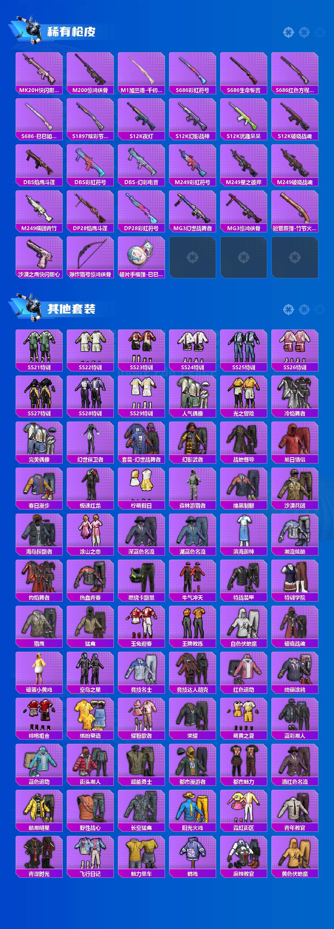 【粉色枪皮等级】:ACE32-萌骑漫游(五级),Kar98K-巳巳如意(五级),Mk14-福马献瑞(五级),AMR-智耀战神(七级),DP-28-豹影疾电(五级)