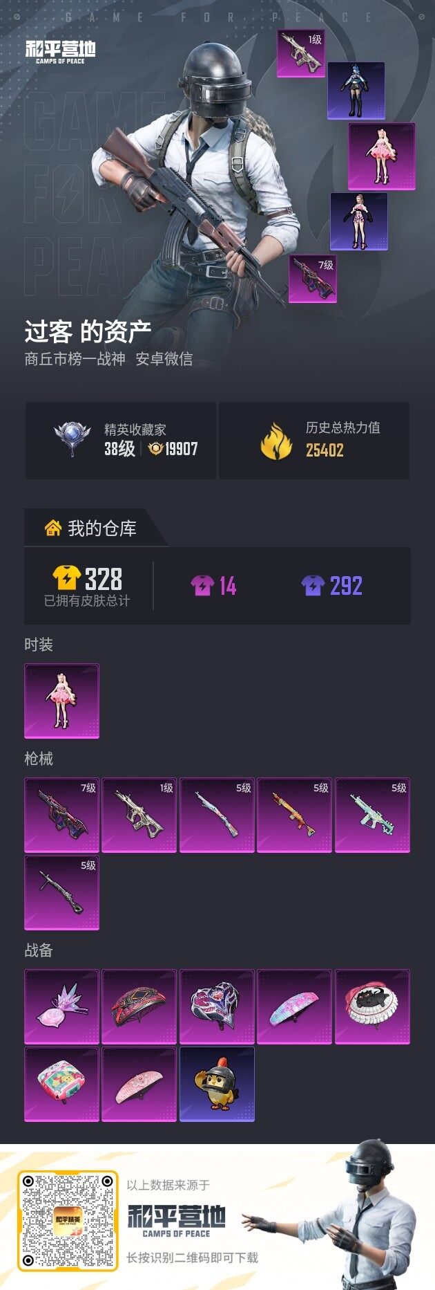 安卓 微信-1粉装-6特效枪-0载具-1粉色飞行器-25402热力值-1王牌印记-49套装-103枪皮