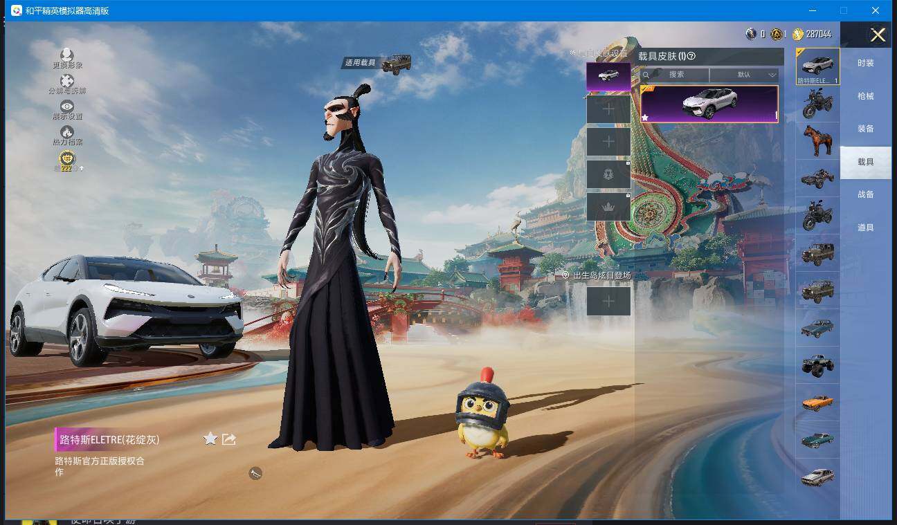 实名: 可修改 时装数: 192 载具数: 1 枪械数: 86 战备数: 45 热门装扮: 复仇流浪者 载具: 路特斯ELETRE(花绽灰) 稀有枪皮: ACE32-萌骑漫游(二级),Kar98K-巳巳如意(五级),Mk14-福马献瑞(五级),DP-28-豹影疾电(五级)
