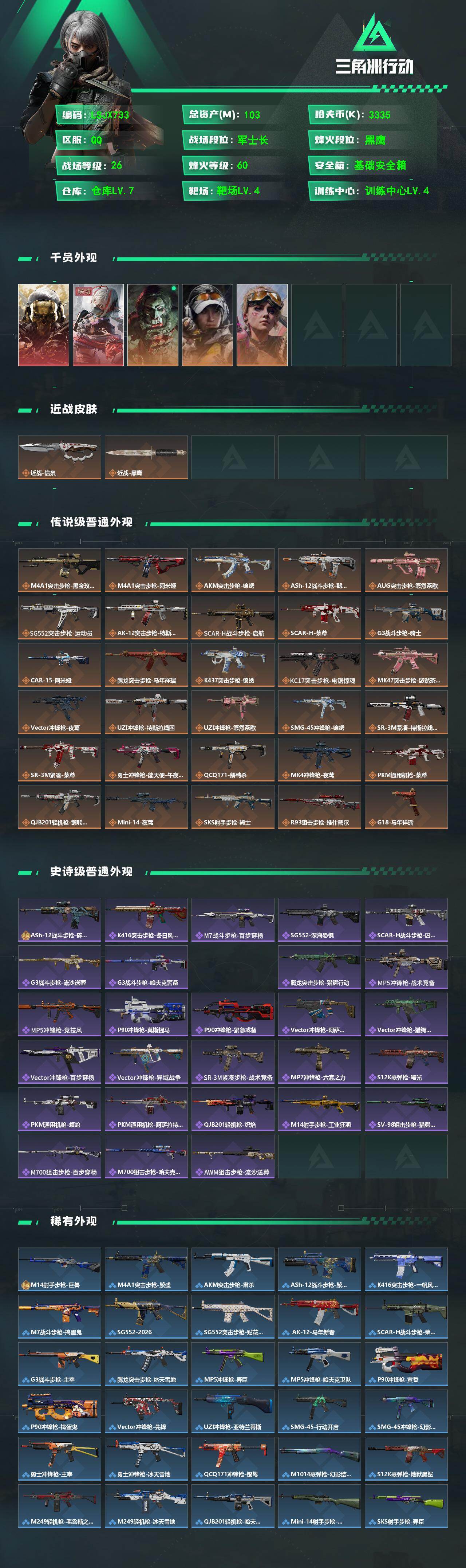 103m总资产-3335k哈夫币-60烽火等级-黑鹰-26战场等级-军士长