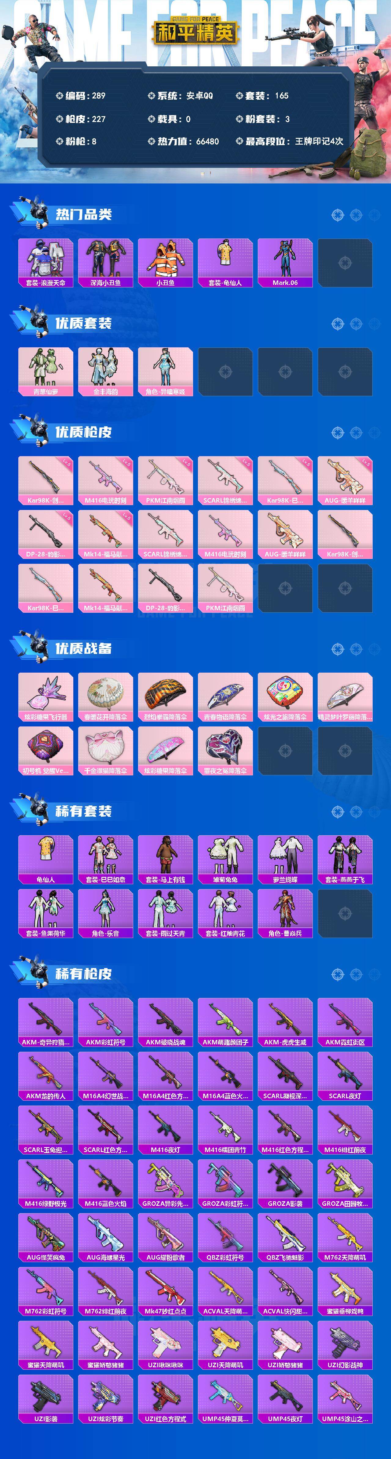 A1753安卓 手Q-3粉装-8特效枪-0载具-1粉色飞行器-66480热力值-4王牌印记-165套装-227枪皮