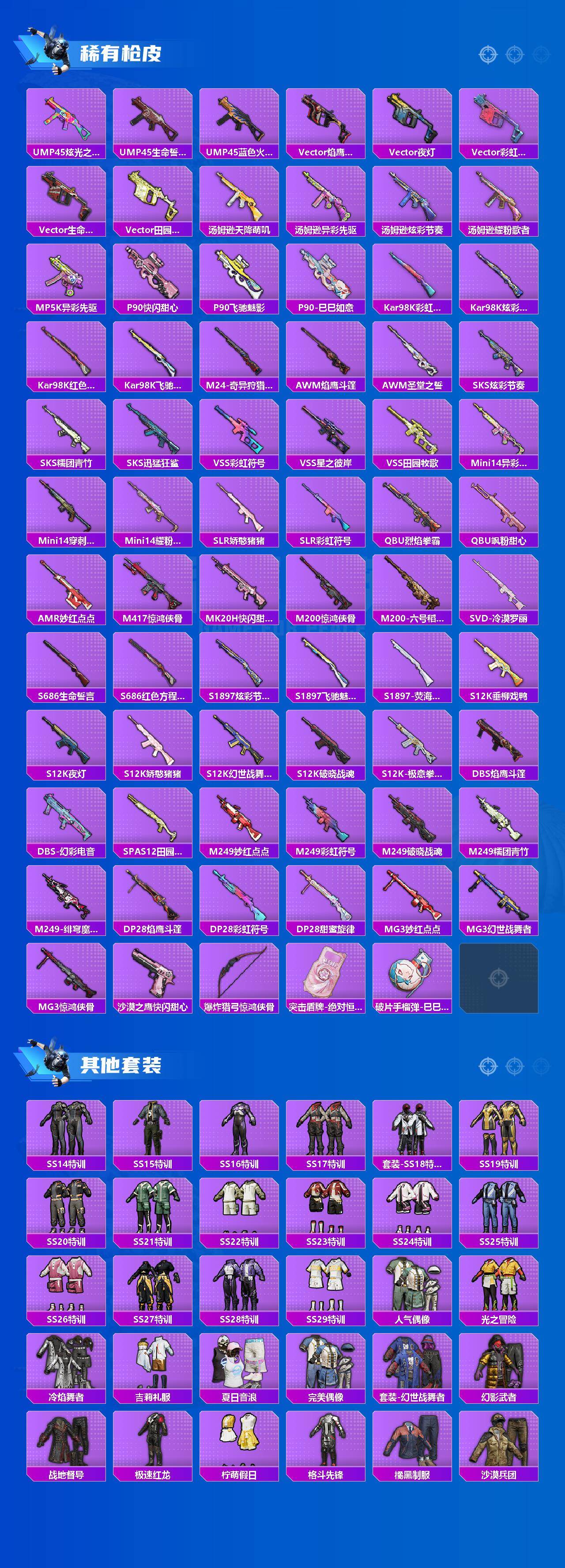 【粉色枪皮等级】:SCAR-L-锦绣绵绵(五级),M416-电玩时刻(五级),AUG-暖羊咩咩(五级),Kar98K-创世