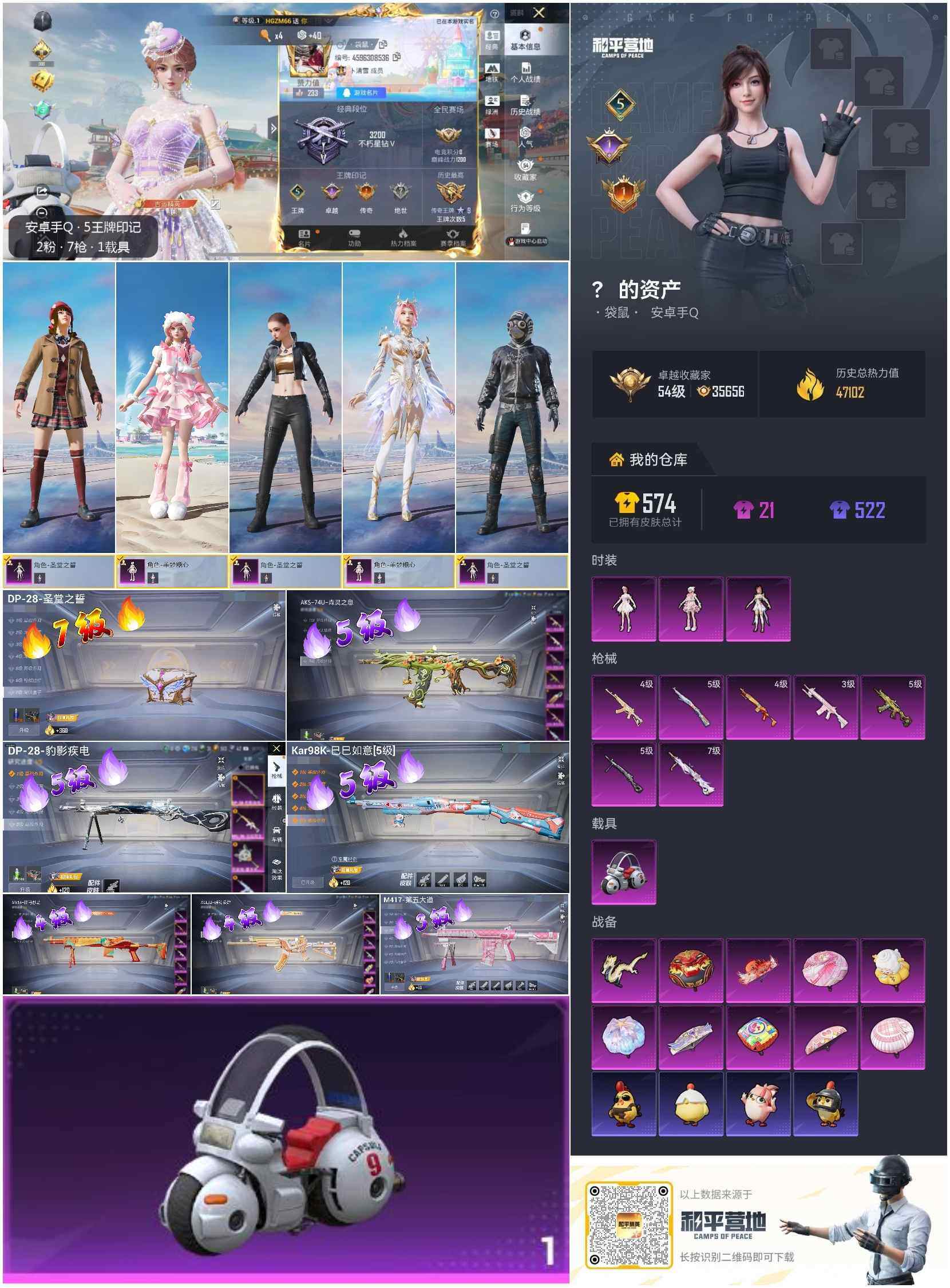 A1964安卓 手Q-3粉装-7特效枪-1载具-1粉色飞行器-47102热力值-5王牌印记-102套装-168枪皮