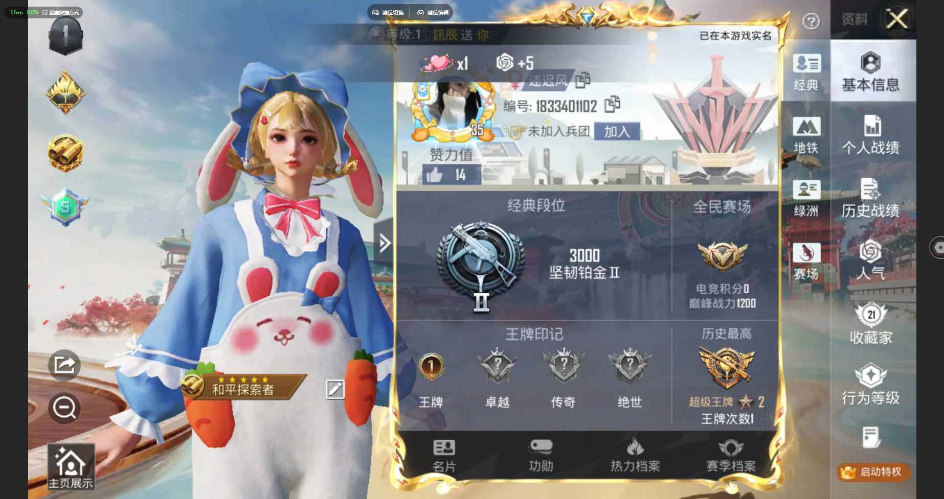 苹果 微信-3粉装-4特效枪-0载具-0粉色飞行器-11838热力值-1王牌印记-24套装-38枪皮