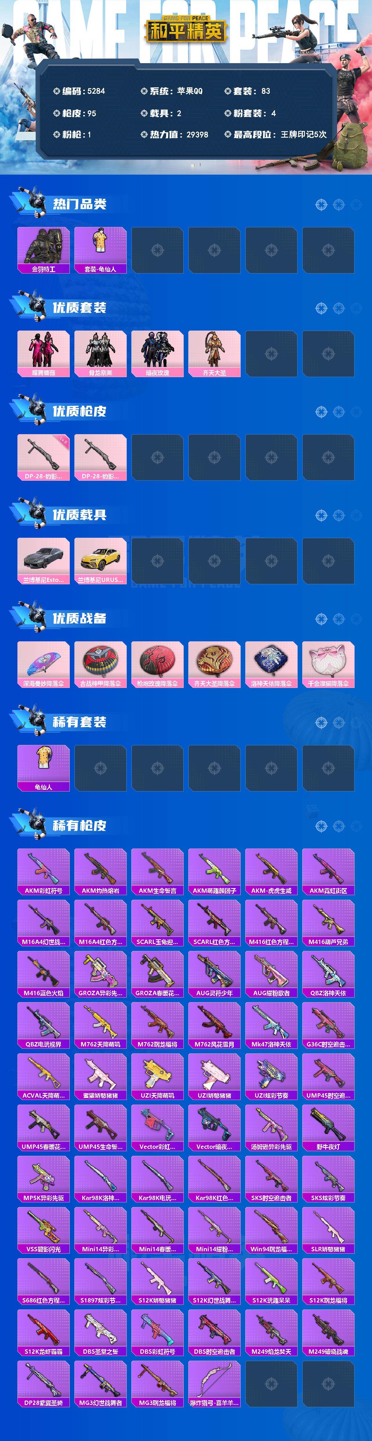 苹果 手Q-4粉装-1特效枪-2载具-0粉色飞行器-29398热力值-5王牌印记-83套装-95枪皮