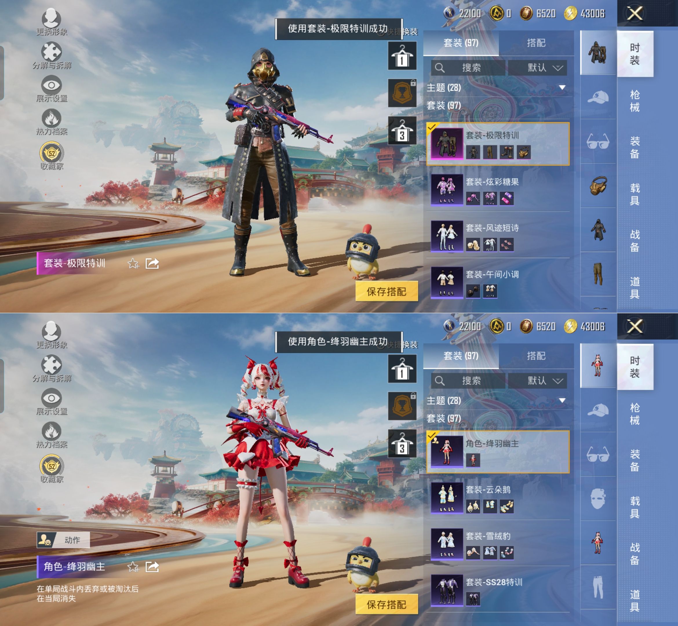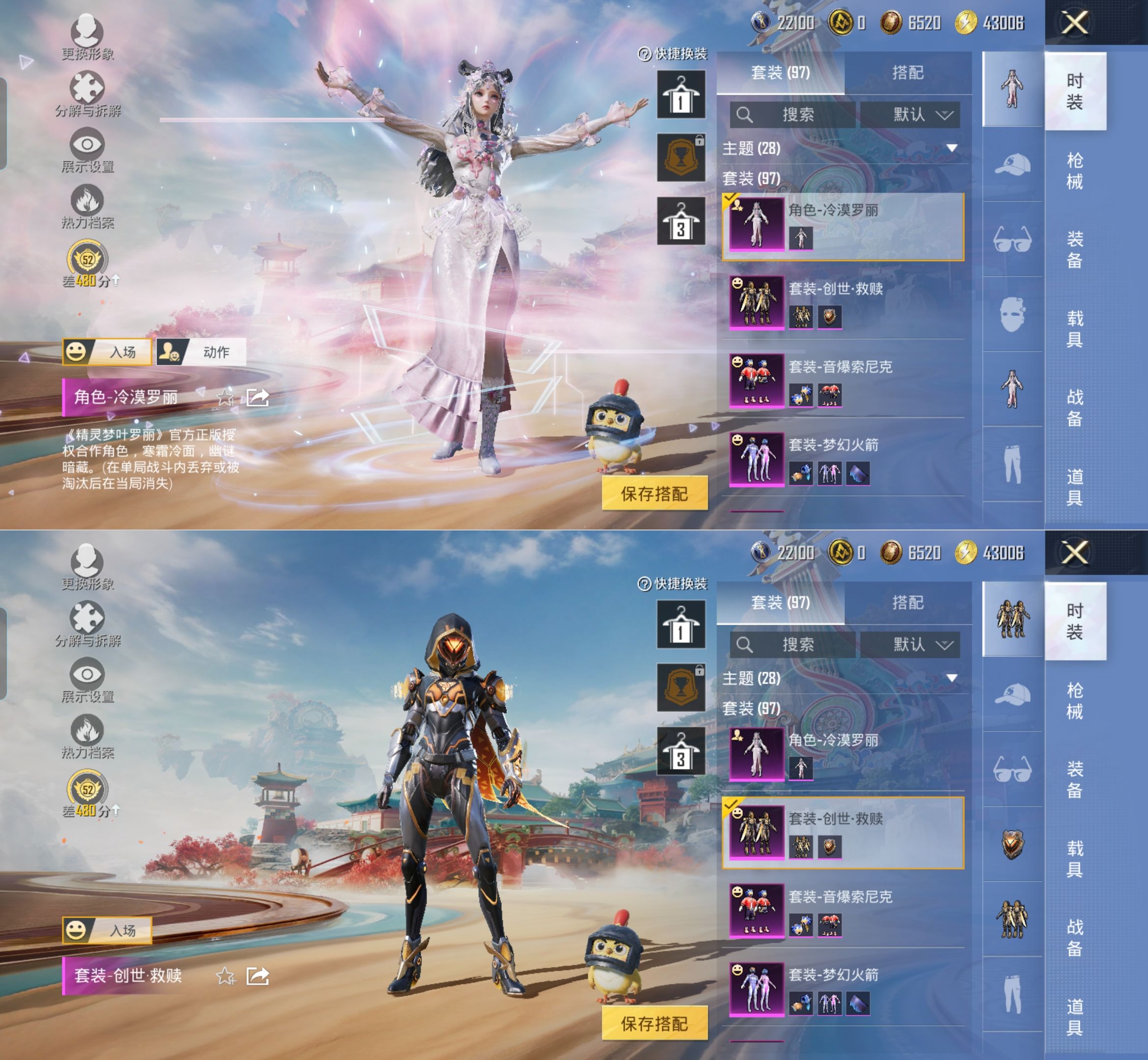 M1047119【身法号5粉装-3特效枪 梦幻火箭 极限特训 小丑鱼 创世救赎 忍者信条 7级洛神天依】安卓手Q-5粉装-3特效枪-97套装-138枪皮-3王牌印记-不朽星钻Ⅴ-40378热力值【5粉装】角色-冷漠罗丽,音爆索尼克,极限特训,梦幻火箭,创世·救赎【3特效枪】DP-28-豹影疾电[5级],Kar98K-巳巳如意[4级],MG3-洛神天依[7级]【3稀有】忍者信条,小丑鱼,汤姆逊-奇