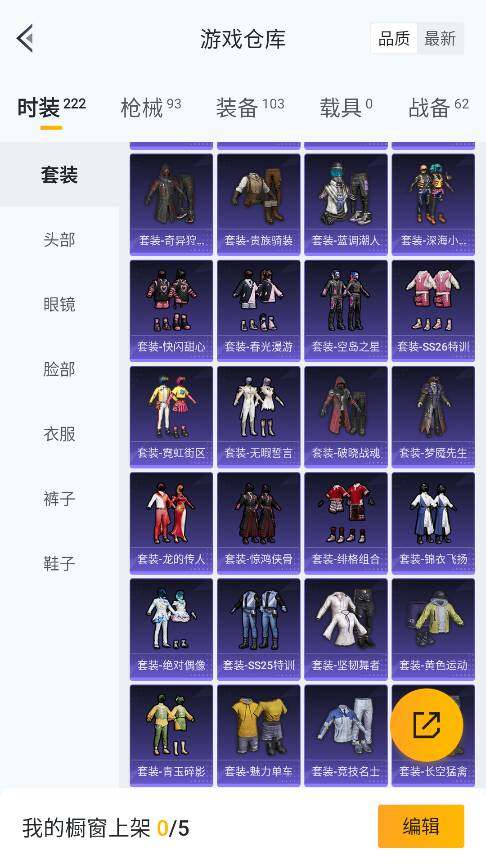 实名: 可修改 时装数: 222 枪械数: 93 战备数: 62 热门装扮: