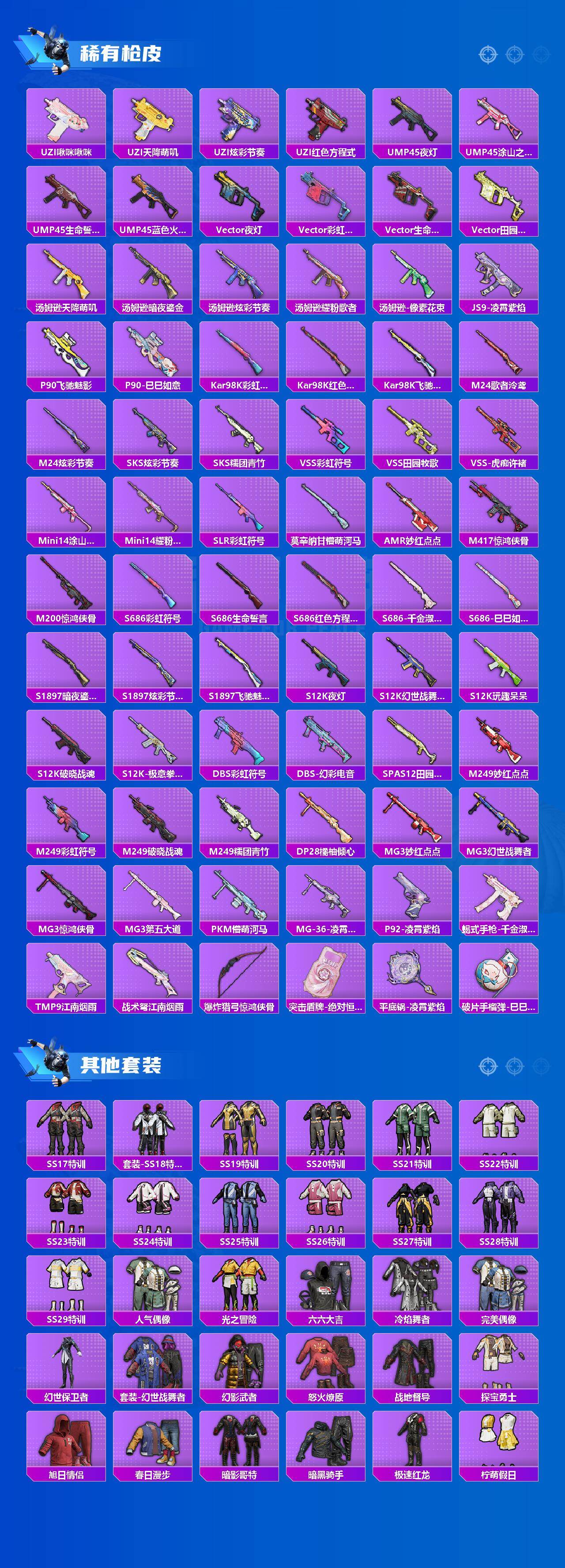 【粉色枪皮等级】:SCAR-L-锦绣绵绵(五级),M416-电玩时刻(五级),GROZA-镜光银凌(五级),AUG-暖羊咩咩(五级),ACE32-萌骑漫