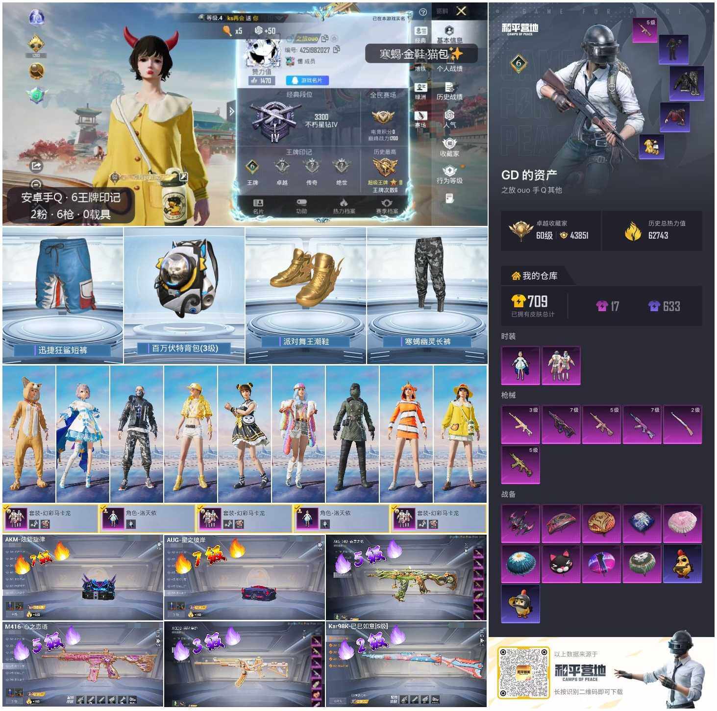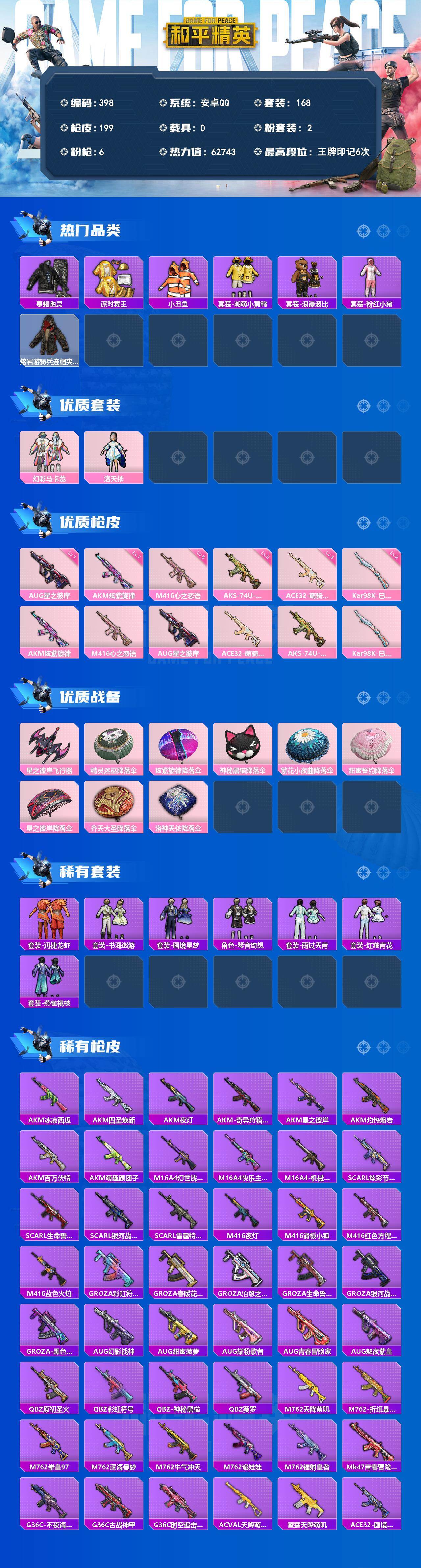 A2064安卓 手Q-2粉装-6特效枪-0载具-1粉色飞行器-62743热力值-6王牌印记-168套装-199枪皮