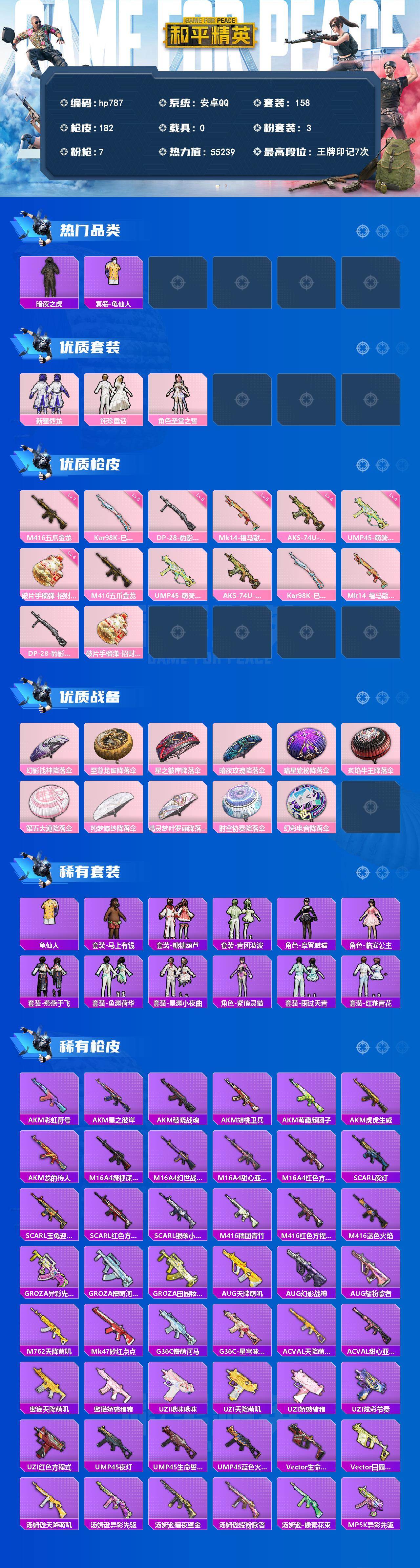 安卓 手Q-3粉装-7特效枪-0载具-0粉色飞行器-55239热力值-7王牌印记-158套装-182枪皮