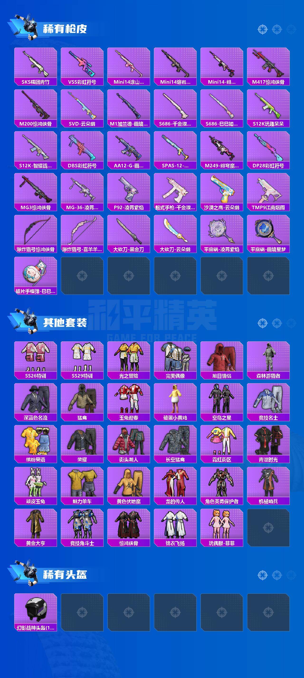 【粉色枪皮等级】:UMP45-萌骑冒险(四级),AKS-74U-森灵之息(五级),Kar98K-巳巳如意(五级),Mk14-福马献瑞(四级)
