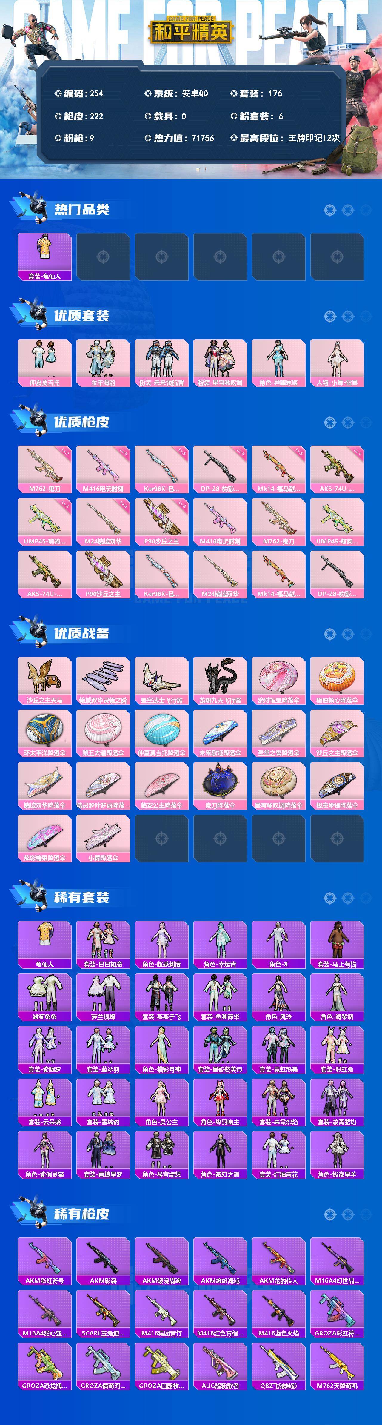 A1508安卓 手Q-6粉装-9特效枪-0载具-4粉色飞行器-71756热力值-12王牌印记-176套装-222枪皮