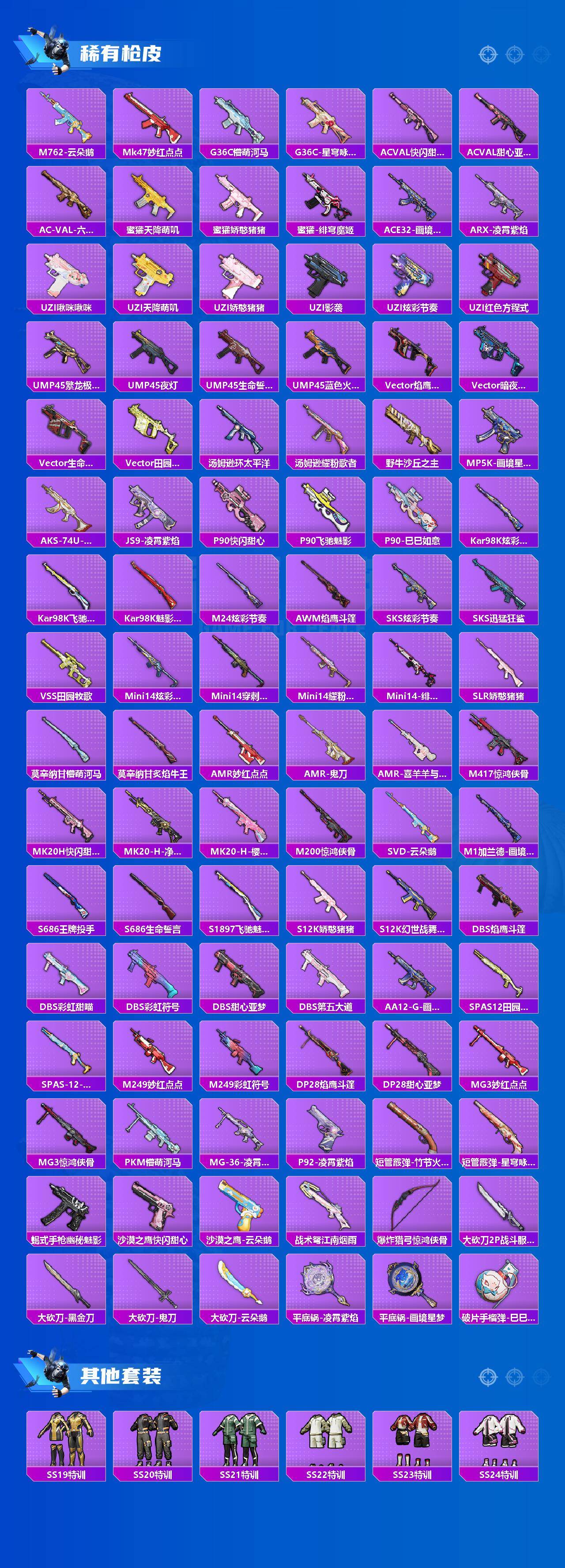 【粉色枪皮等级】:M416-电玩时刻(五级),M762-鬼刀(七级),UMP45-萌骑冒险(四级),AKS-74U-森灵之息(四级),