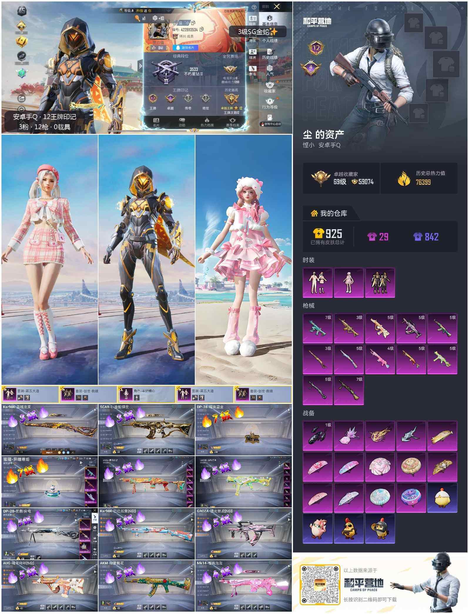 A2076安卓 手Q-3粉装-12特效枪-0载具-4粉色飞行器-76399热力值-12王牌印记-170套装-268枪皮