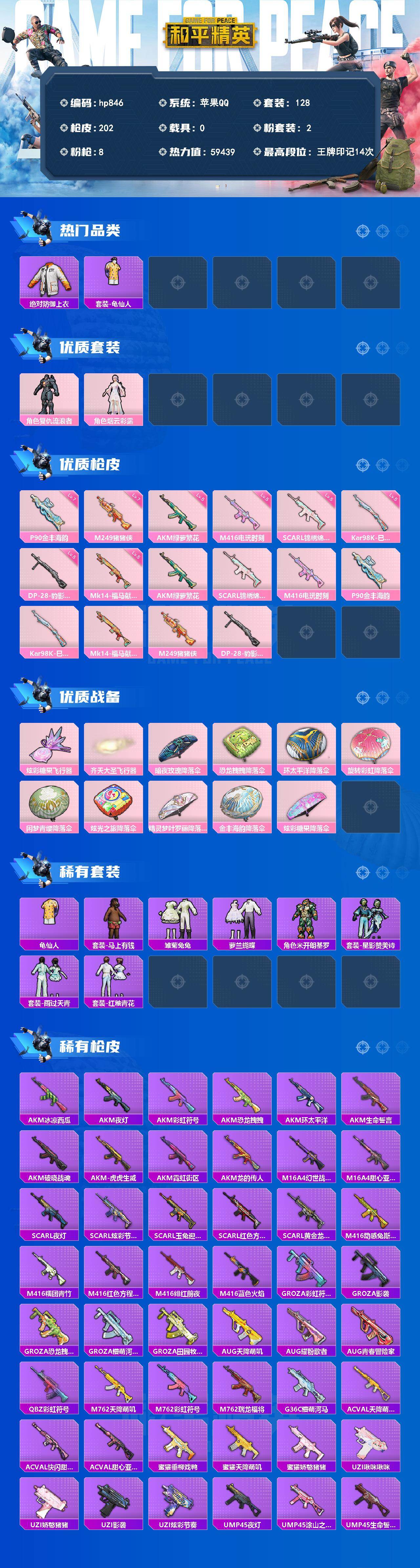 苹果 手Q-2粉装-8特效枪-0载具-2粉色飞行器-59439热力值-14王牌印记-128套装-202枪皮