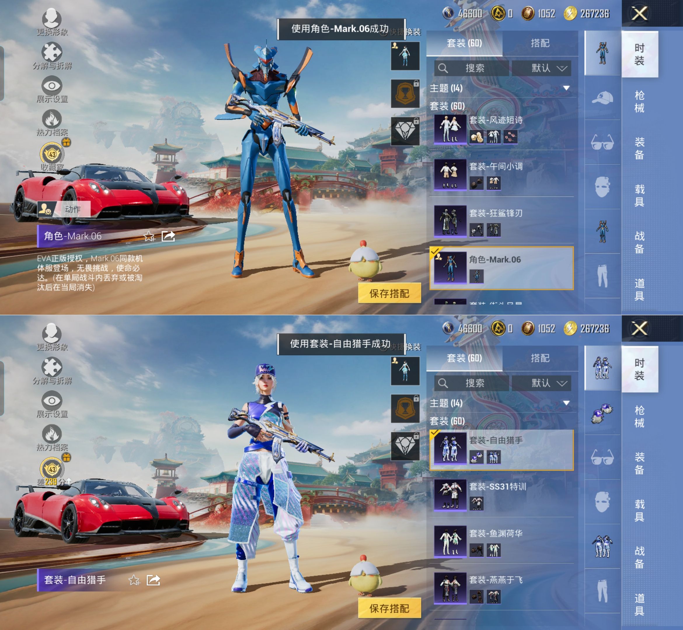 M1047317【地铁满天赋1载具-3粉装-6特效枪 梦幻火箭 暗影哥特,小丑鱼】无二次包 安卓手Q-1载具-3粉装-6特效枪-60套装-109枪皮-0王牌印记-坚韧铂金Ⅴ-28153热力值【1载具】帕加尼imola(光影红)【3粉装】梦幻火箭,角色-异瞳寒姬,时空协奏·心弦【6特效枪】ACE32-萌骑漫游[1级],DP-28-豹影疾电[3级],AKS-74U-森灵之息[4级],平底锅-喜羊羊与