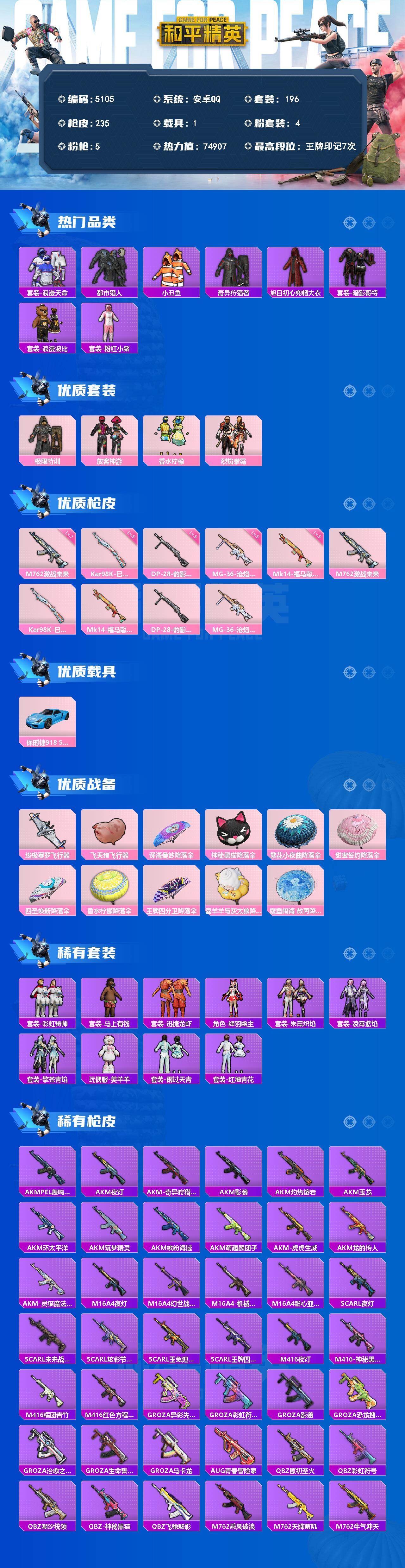 都市奇异狩猎者眼罩安卓 手Q-4粉装-5特效枪-1载具-3粉色飞行器-74907热力值-7王牌印记-196套装-235枪皮