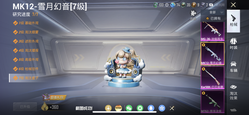 【金鞋红眼罩10特效枪4粉装1载具 秒换绑不用等】 苹果Q区-55142热力值-120套装-183枪皮 【1载具】 宝马M4(圣保罗黄)【3稀有】 派对舞王(金靴子) 红眼罩 8号机粉螳螂【4粉装】 恐龙拽拽 角色-罗征 幻彩电音 角色-千金淑猫【10特效枪】 AKS-74U-森灵之息(5级) Mk14-福马献瑞(5级) AA12-G-萌骑幻想(3级) SCAR-L-锦绣绵绵(5级) M762-