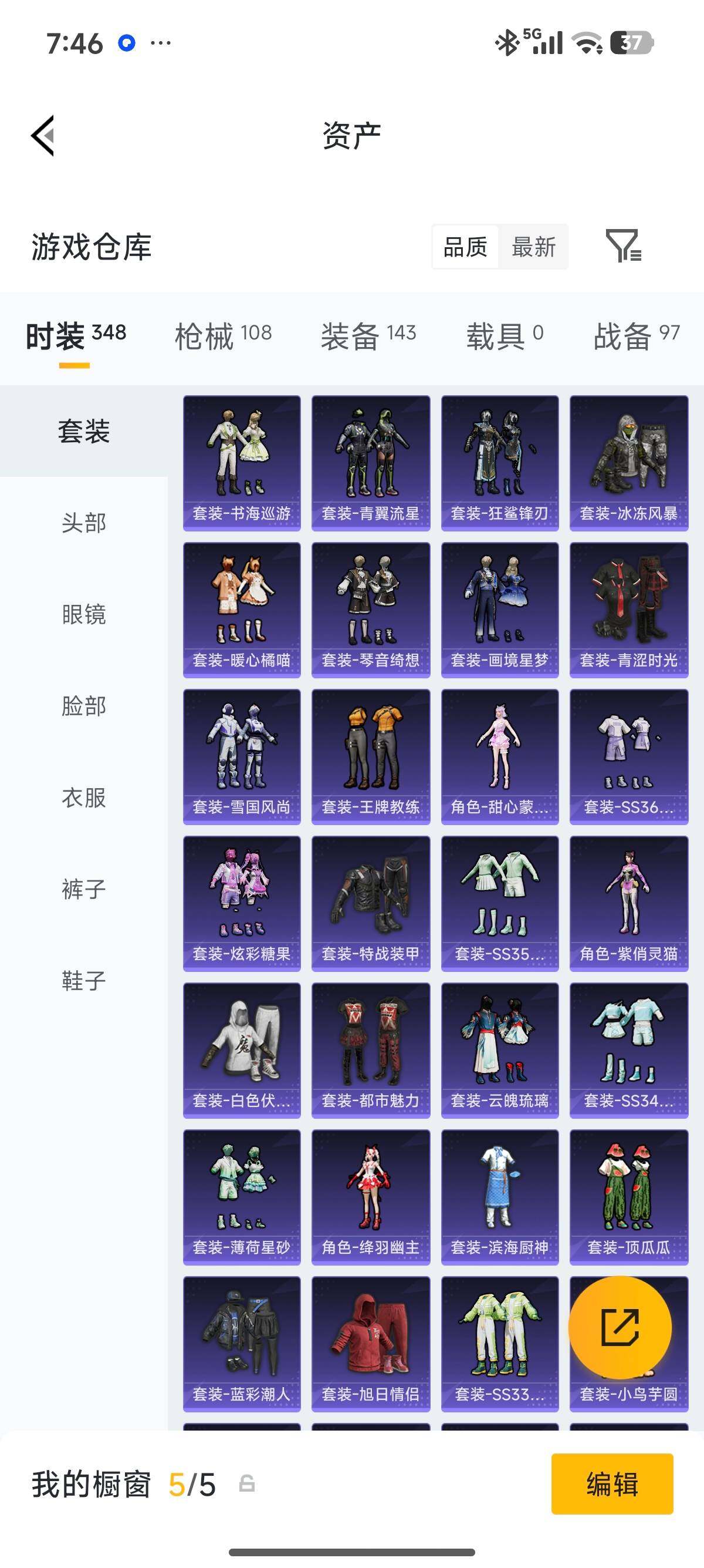 实名: 可修改 时装数: 348 枪械数: 108 战备数: 97 热门装扮: