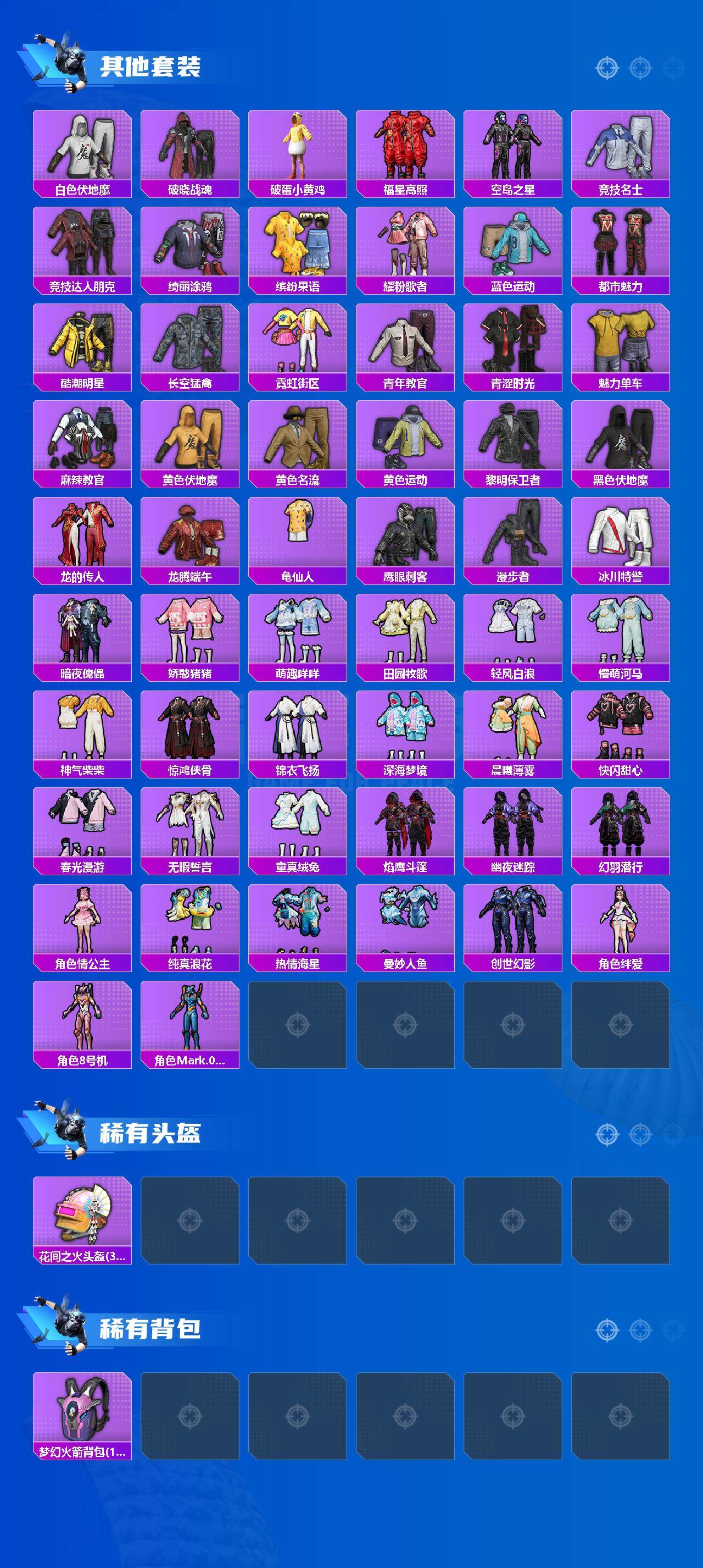 【粉色套装】:粉装-闲梦青缨,角色-烟云彩露,角色-千金淑猫,粉装-幻彩电音,角色-荧海星豚