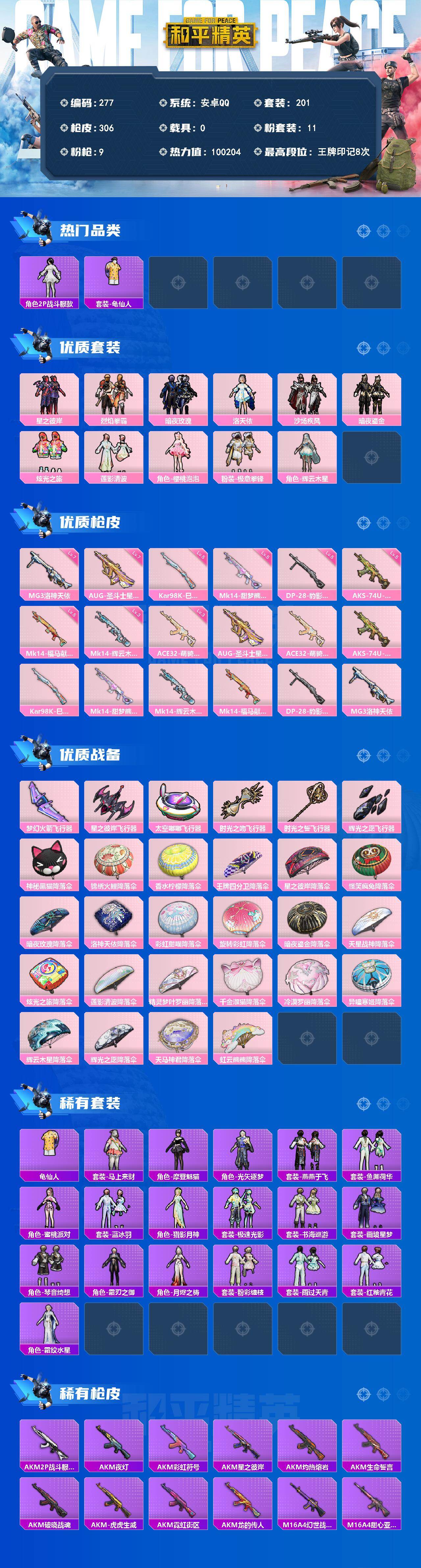 A1690安卓 手Q-11粉装-9特效枪-0载具-6粉色飞行器-100204热力值-8王牌印记-201套装-306枪皮