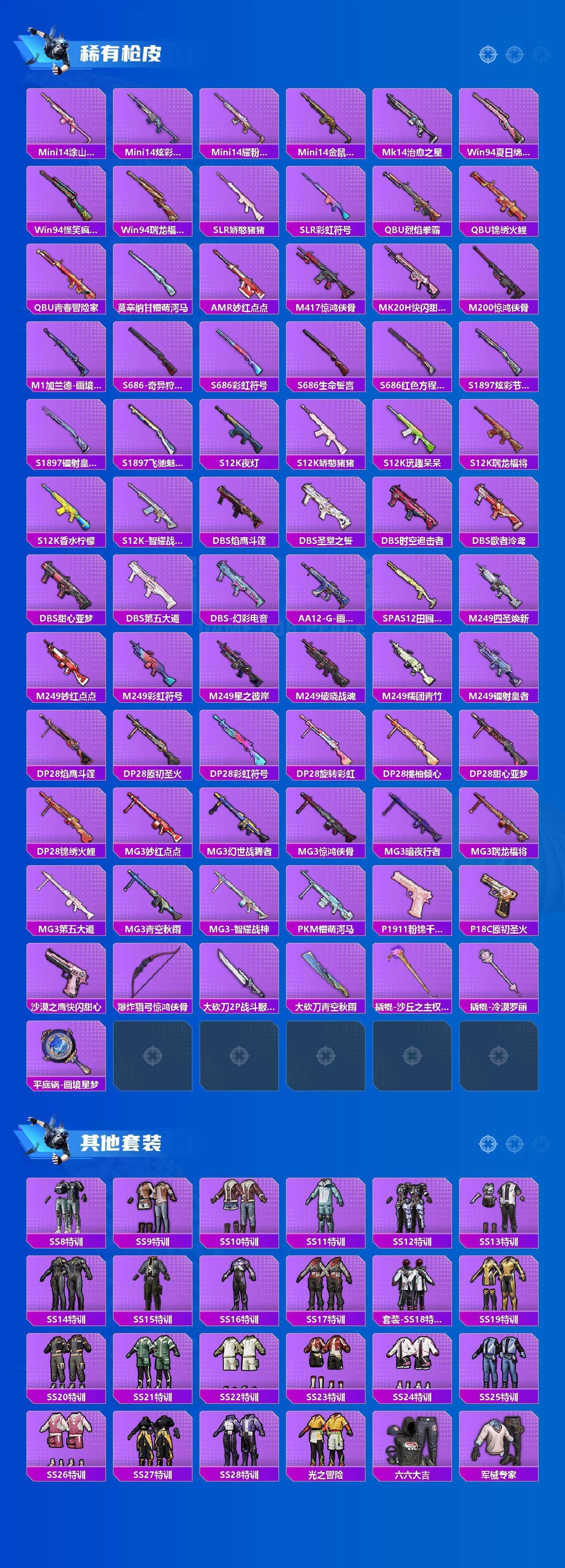【粉色套装】:粉装-星之彼岸,粉装-烈焰拳霸,粉装-暗夜玫瑰,角色-洛天依,粉装-沙场疾风,粉装-暗夜鎏金,粉装-炫光之旅,粉装-莲影清波,角色-樱桃泡泡,粉装-极意拳锋,角色-辉云木星
