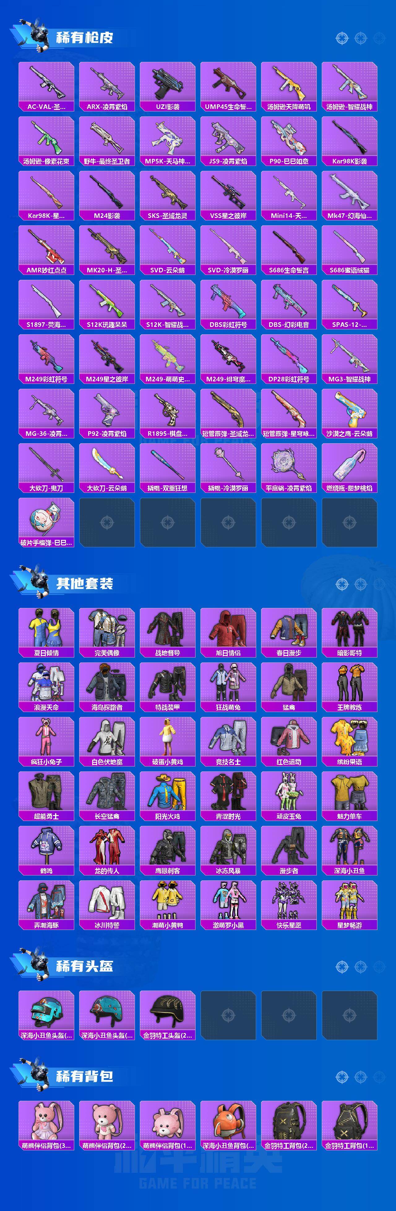 【粉色枪皮等级】:AKM-炫紫旋律(六级),AUG-星之彼岸(三级),AUG-暖羊咩咩