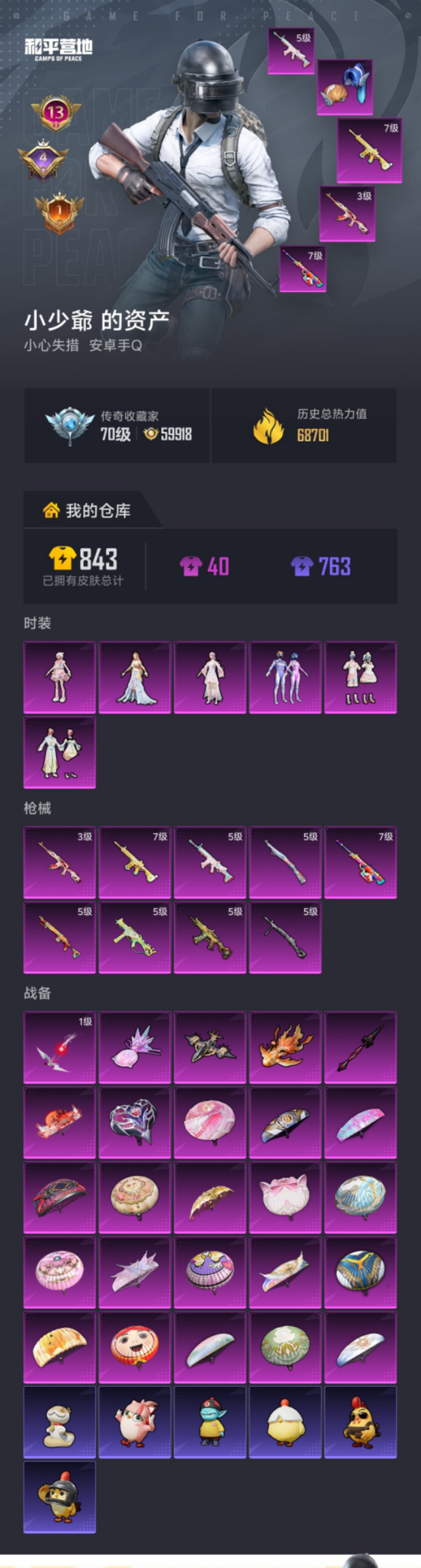 【女号梦幻火箭满级M4暖熊萌萌9特效枪6粉装 秒换绑不用等】 安卓Q区-68701热力值-139套装-231枪皮 【6粉装】 梦幻火箭 蜜语绒猫 莲影清波 角色-智耀战神 角色-烟云彩露 角色-羊梦糖心【9特效枪】 M416-暖熊萌萌(7级) AKS-74U-森灵之息(5级) AKM-暮色玫影(3级) Mk14-福马献瑞(5级) UMP45-萌骑冒险(5级) AMR-炫光之旅(7级) SCAR-