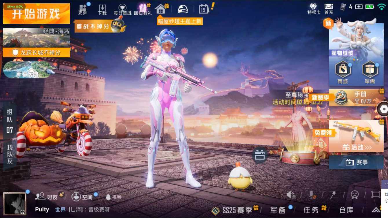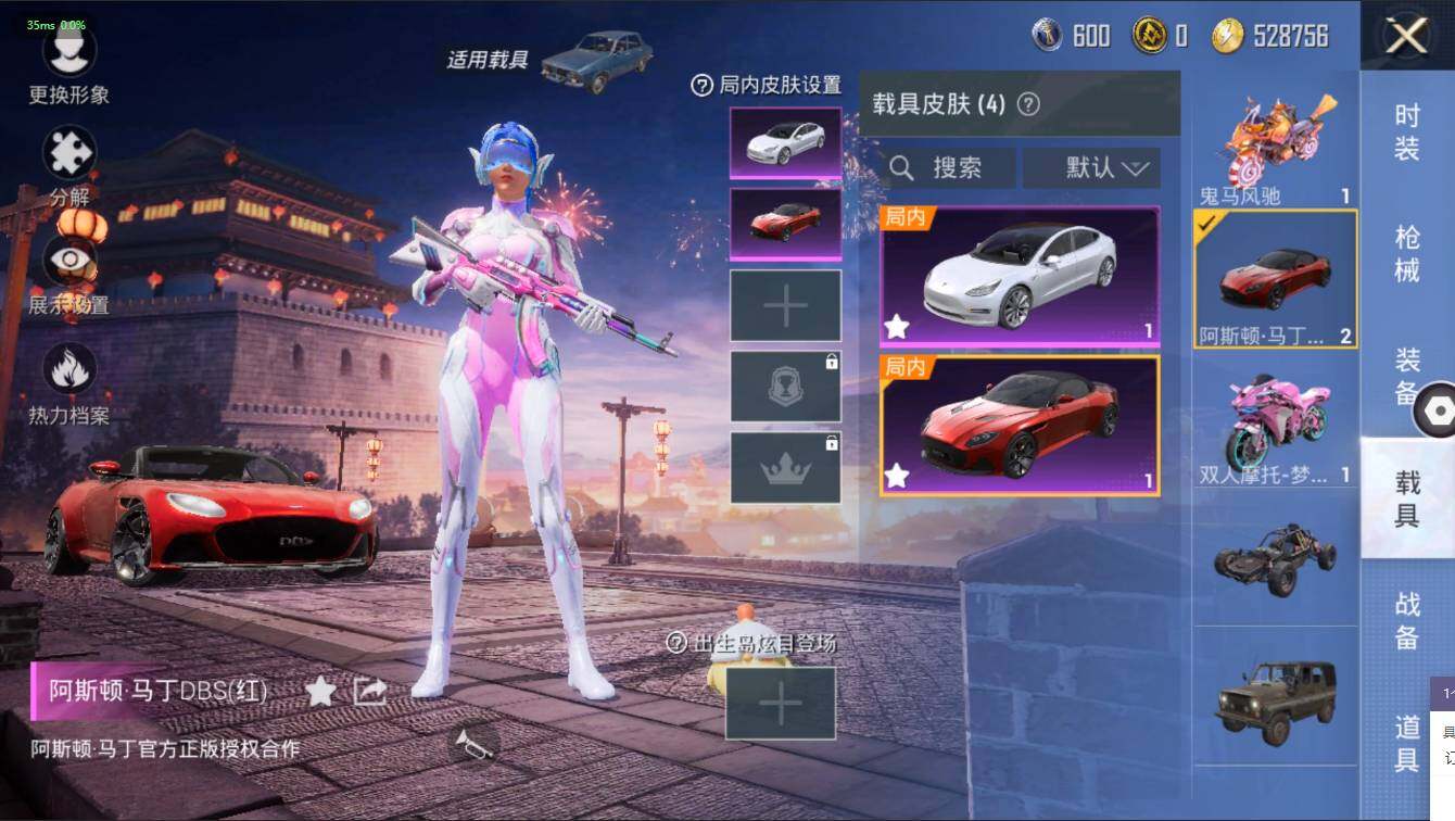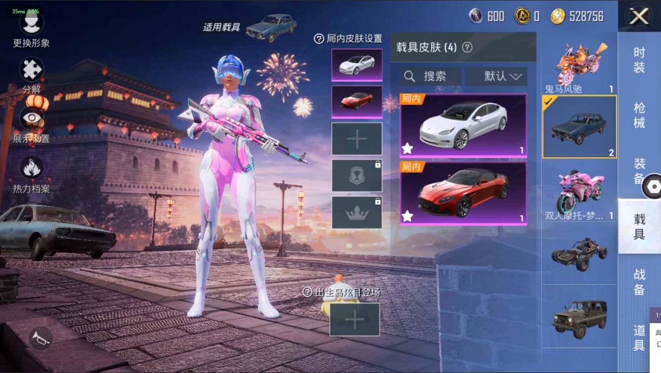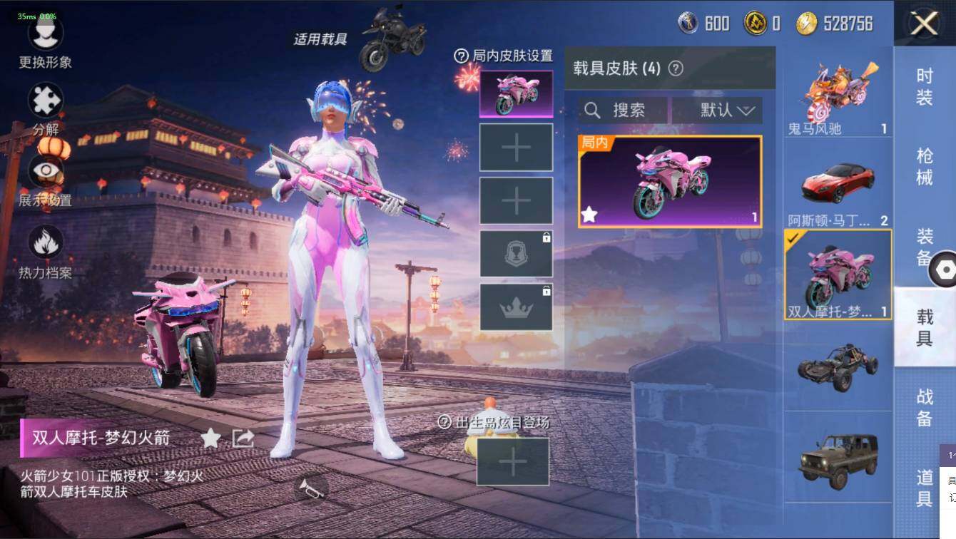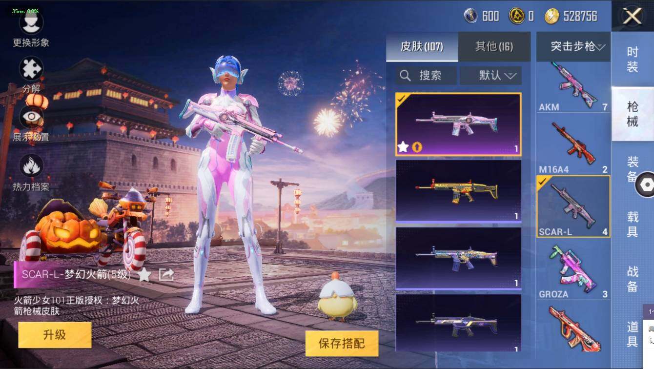 实名: 可修改 时装数: 288 载具数: 4 枪械数: 107 战备数: 61 热门装扮: 梦幻火箭(新101),天启纪元,麻辣鲜香锅,潮萌小黄鸭,大橘为重,奇迹天团 载具: 双人摩托-梦幻火箭,特斯拉Model 3(珍珠白),阿斯顿·马丁DBS(红),鬼马风驰 稀有枪皮: AKM炫紫旋律【7级】,SCAR-L梦幻火箭【5级】