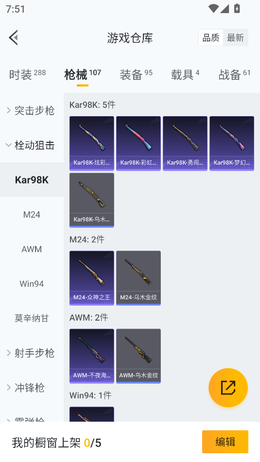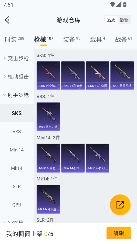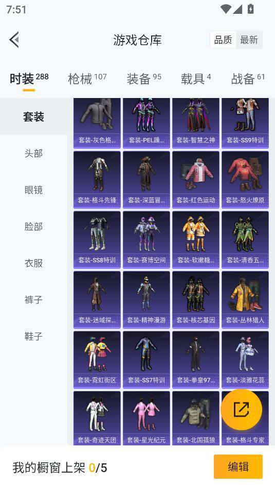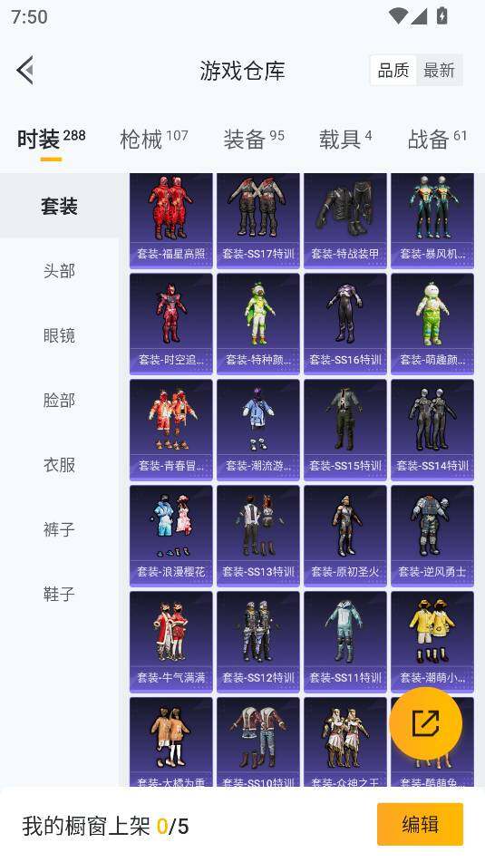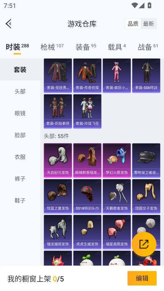 实名: 可修改 时装数: 288 载具数: 4 枪械数: 107 战备数: 6
