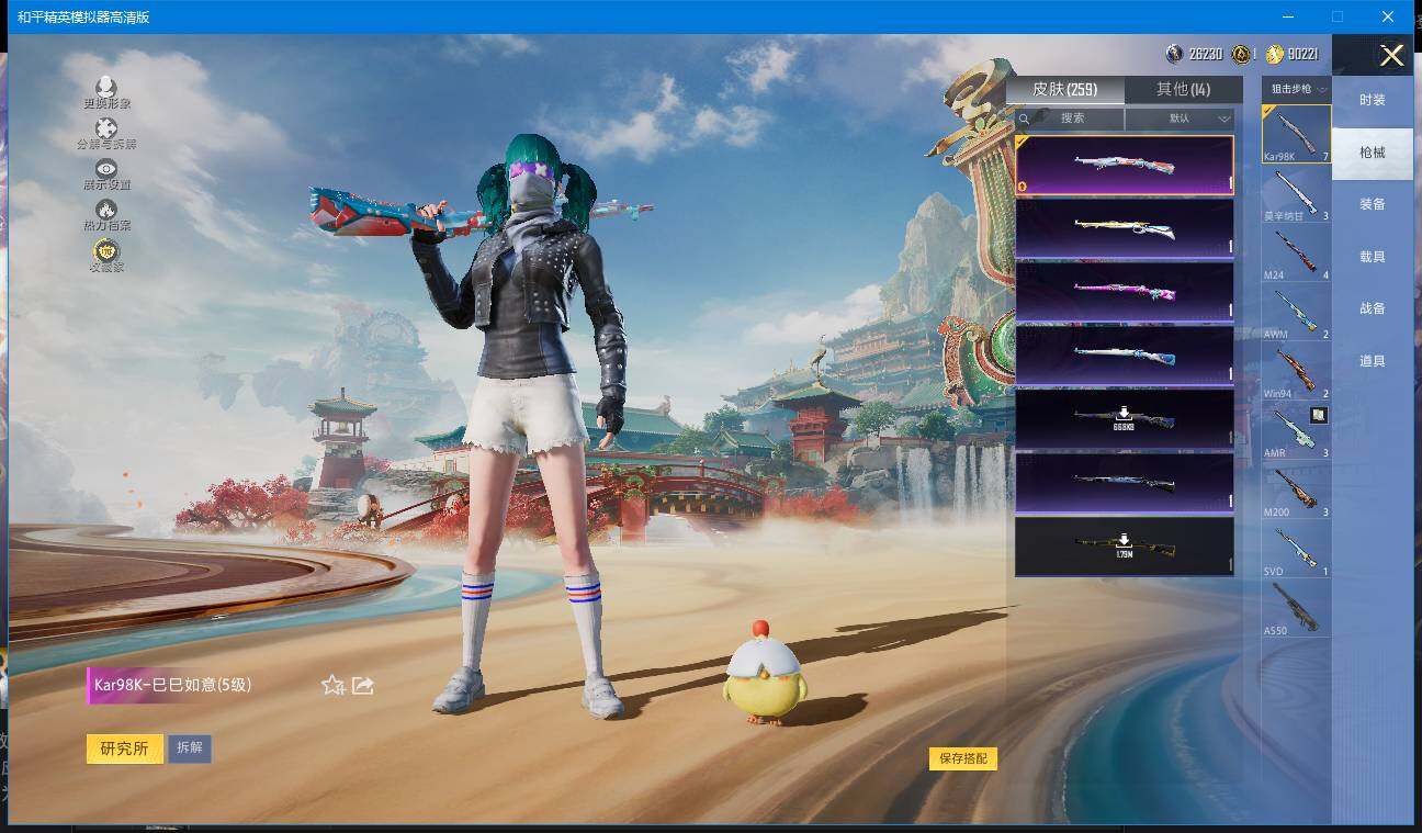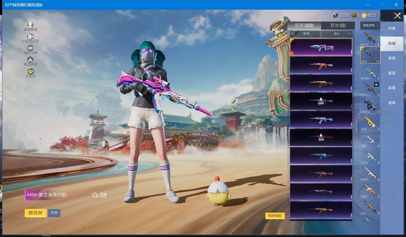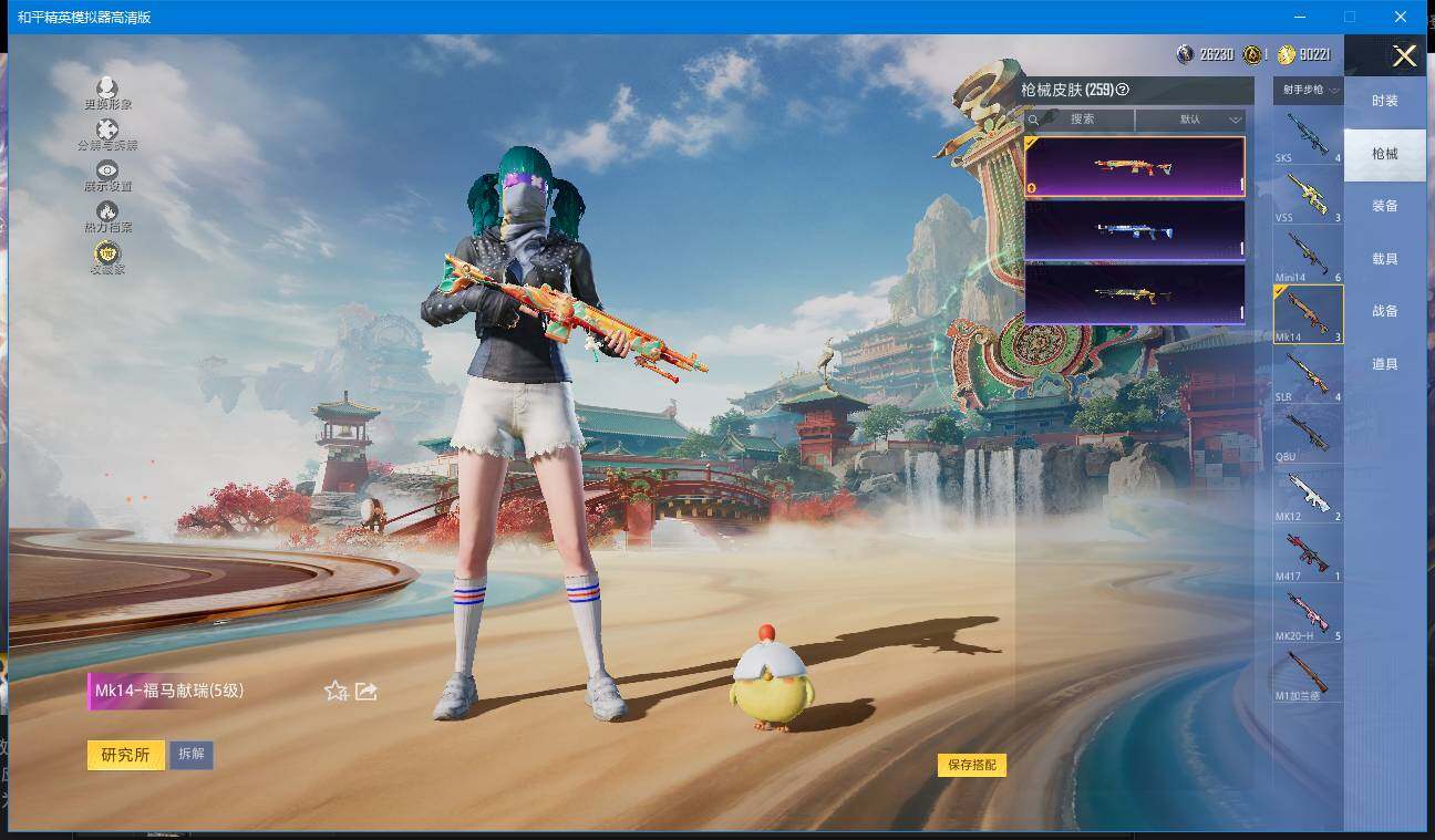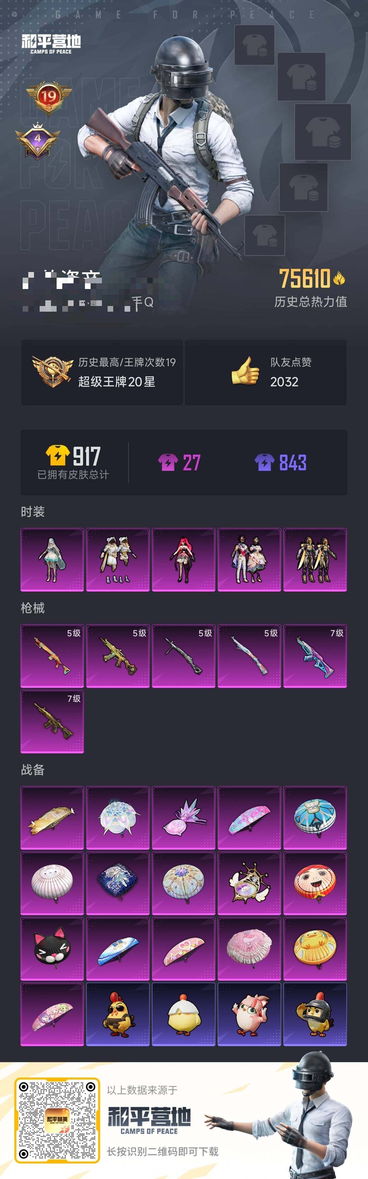 时装数: 629 枪械数: 259 战备数: 184 热门装扮: 奇异狩猎者,呆萌铁蟹,深海小丑鱼,万圣娃娃,迅捷狂鲨,鹰眼刺客,都市猎人,软萌银虎,创世·救赎,星穹咏叹调,绯穹魔姬,极意拳锋,辉云木星 稀有枪皮: AKM-梦之光华(七级),M416-五爪金龙(七级),AKS-74U-森灵之息(五级),Kar98K-巳巳如意(五级),Mk14-福马献瑞(五级),DP-28-豹影疾电(五级)
