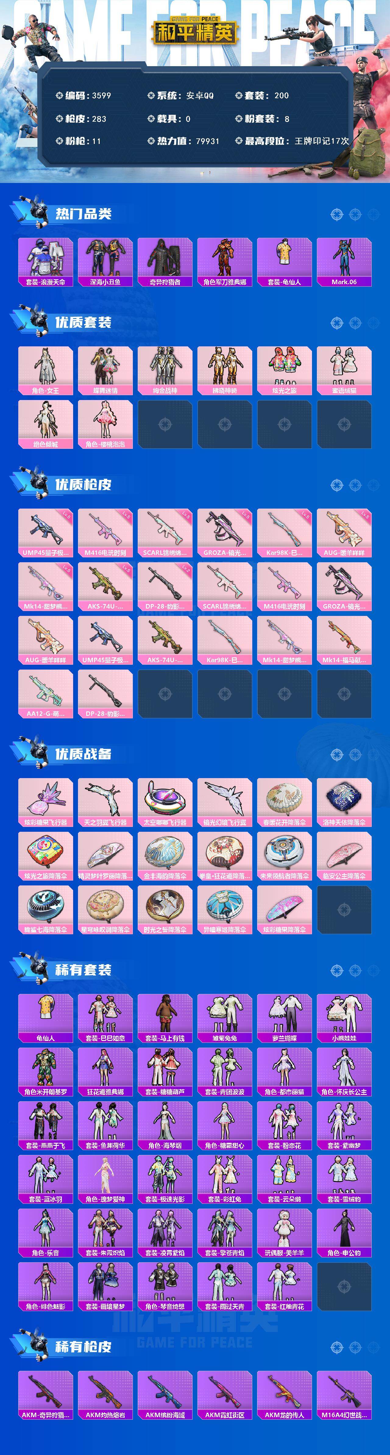 满级地铁 安卓 手Q-8粉装-11特效枪-0载具-4粉色飞行器-79931热力值-17王牌印记-200套装-283枪皮