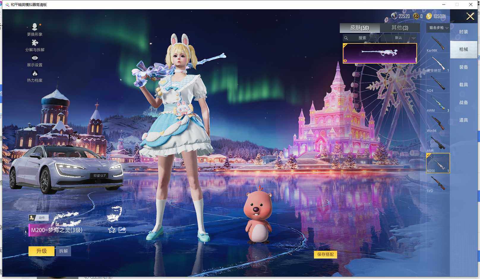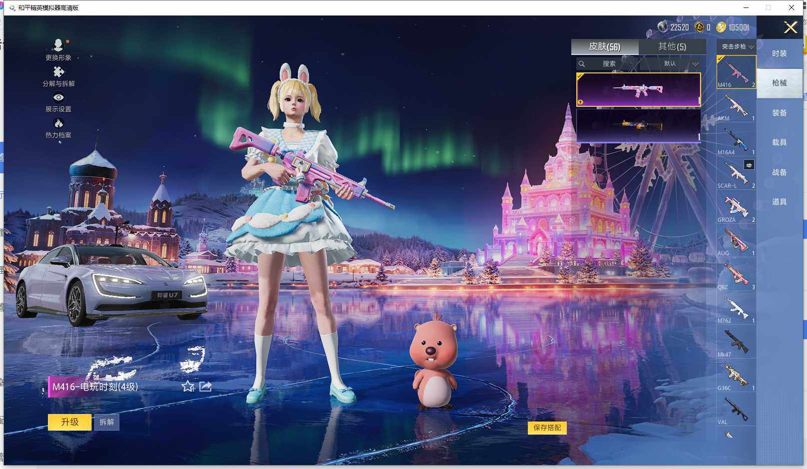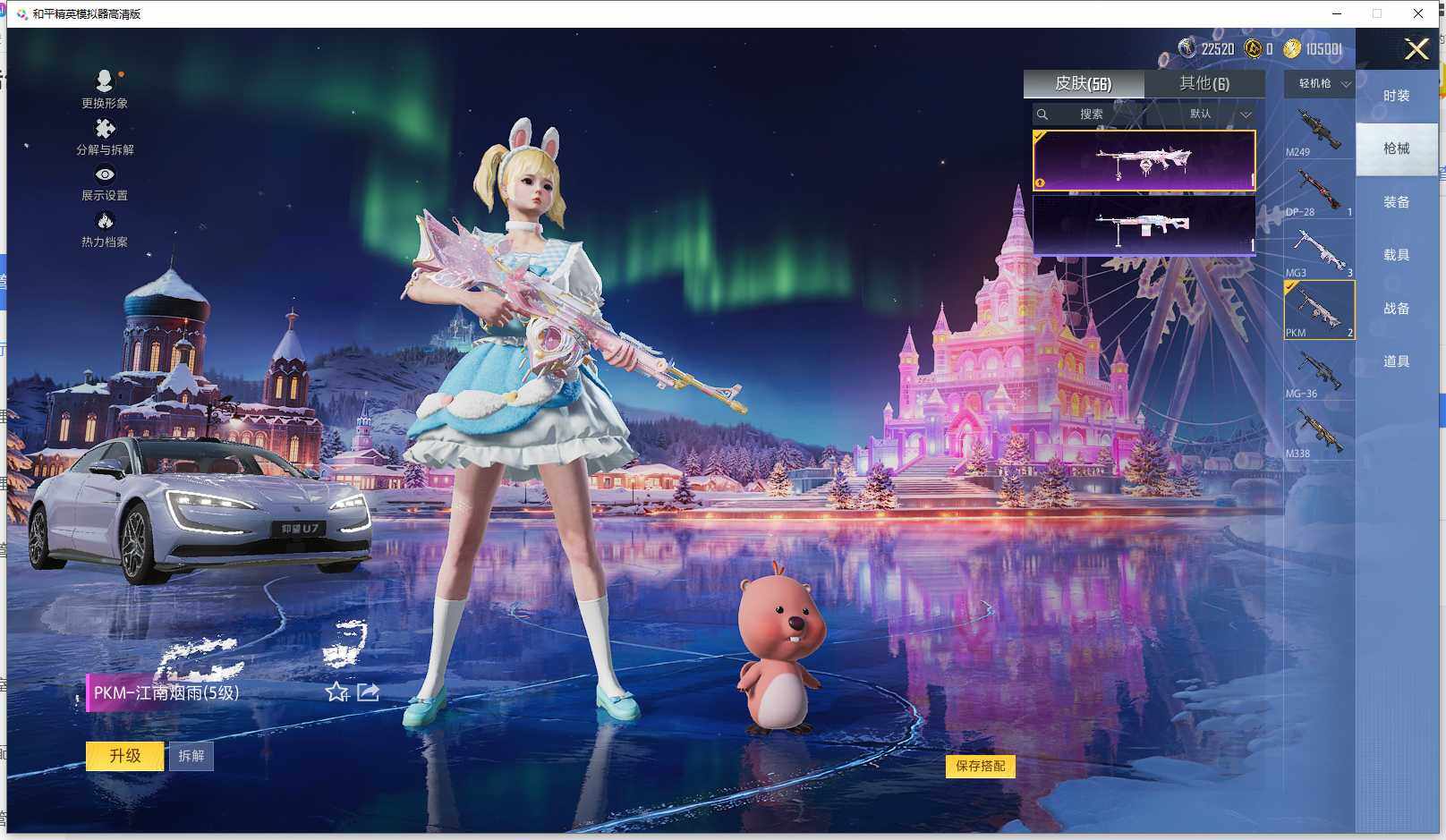实名: 可修改 时装数: 51 载具数: 1 枪械数: 56 战备数: 64 热门装扮: 极致幻想,绚金瑰梦,焦糖拿铁,岚岚物语,冰川红玫,奶芙汪汪,小可学妹,烟云彩露,美雪,光极星 载具: 仰望U7先锋版(阿盖尔紫) 稀有枪皮: SCAR-L-锦绣绵绵(五级),M416-电玩时刻(四级),M200-梦海之灵(三级),PKM-江南烟雨(五级)
