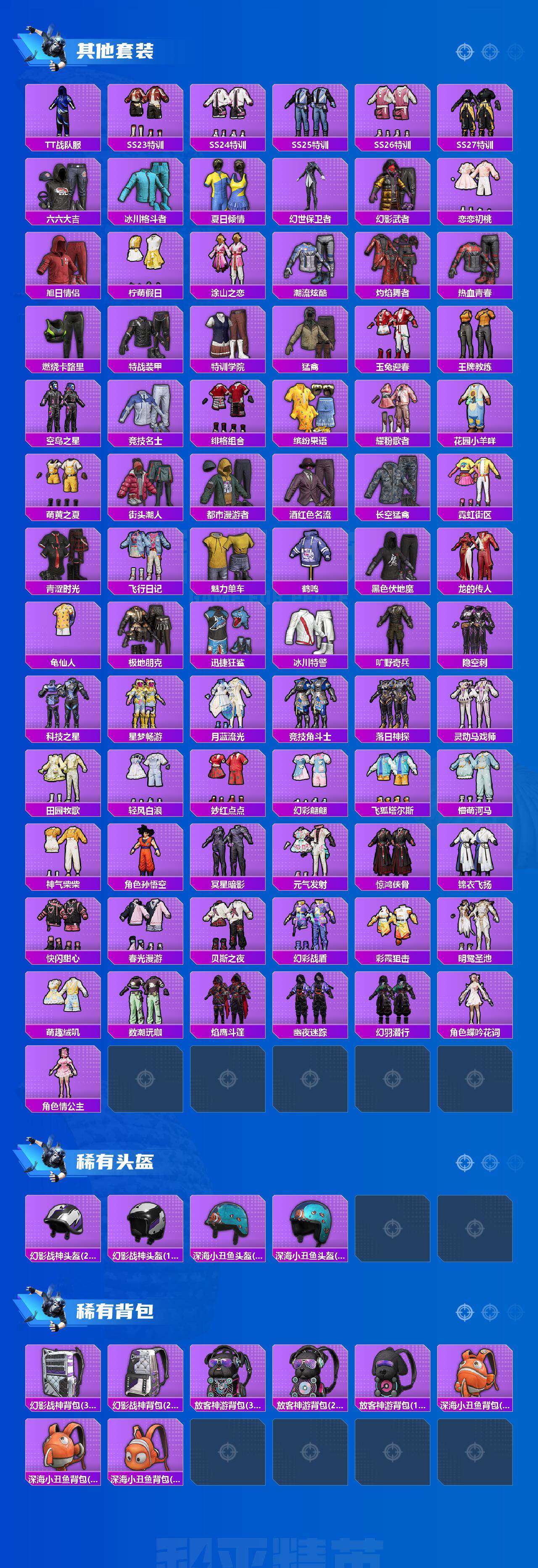 【粉色套装】:粉装-冰霜白皇,粉装-飓风飞鹰,粉装-冰川幽秘,粉装-寒光使者,角色-呆萌星弥,粉装-闲梦青缨,粉装-天衡星秤,角色-宙之时溯,角色-星云暗核,粉装-憨憨奶龙,角色-小蓝,角色-光极星,角色-