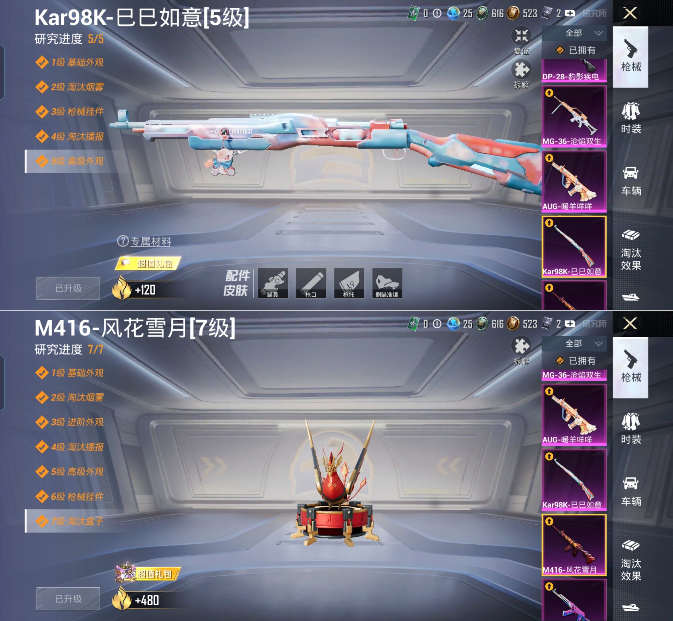 M1047111【身法号1载具-7粉装-8特效枪 梦幻火箭 银红美神 忍者信条,暗影哥特,深海小丑鱼,胖达圆圆,狂沙舞者,浪漫天命,激萌罗小黑,小丑鱼 AUG-暖羊咩咩[5级]M416-风花雪月[7级]AKM-梦之光华[7级]P90-魔童闹海敖丙[3级]】安卓手Q-1载具-7粉装-8特效枪-209套装-272枪皮-15王牌印记-坚韧铂金Ⅳ-84893热力值【1载具】保时捷Panamera(梦幻青