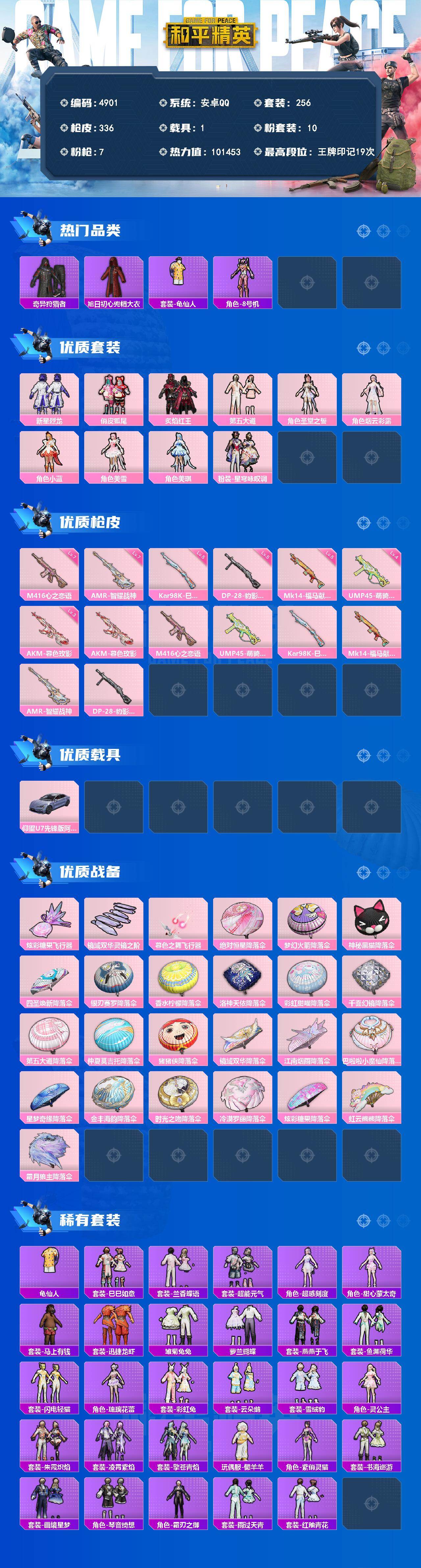 安卓 手Q-10粉装-7特效枪-1载具-3粉色飞行器-101453热力值-19王牌印记-256套装-336枪皮