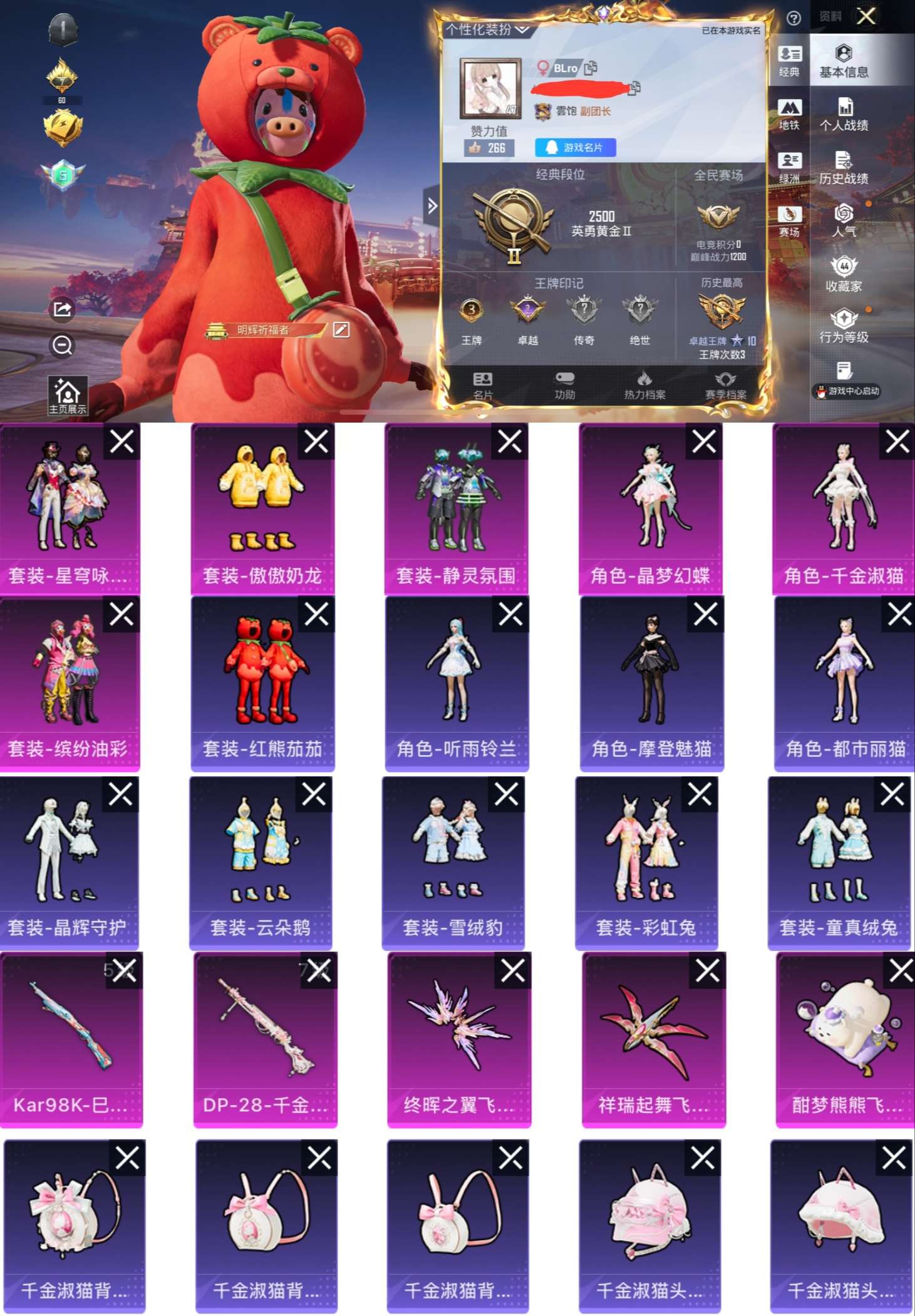 XQ1061+【极品女号权威小番茄猪脸素材 6粉装2特效5飞行器地铁满天赋48点 2太阳可二次】苹果Q区-6粉装-2特效枪-29806热力值-3王牌印记-86套装-94枪皮【优质套装】: 缤纷油彩 星穹咏叹调 傲傲奶龙 千金淑猫 晶梦幻蝶 静灵氛围【特效枪等级】:DP-28-千金淑猫(七级)Kar98K-巳巳如意(五级)【优质武器皮肤】: DP-28-千金淑猫 Kar98K-巳巳如意【稀有武器皮