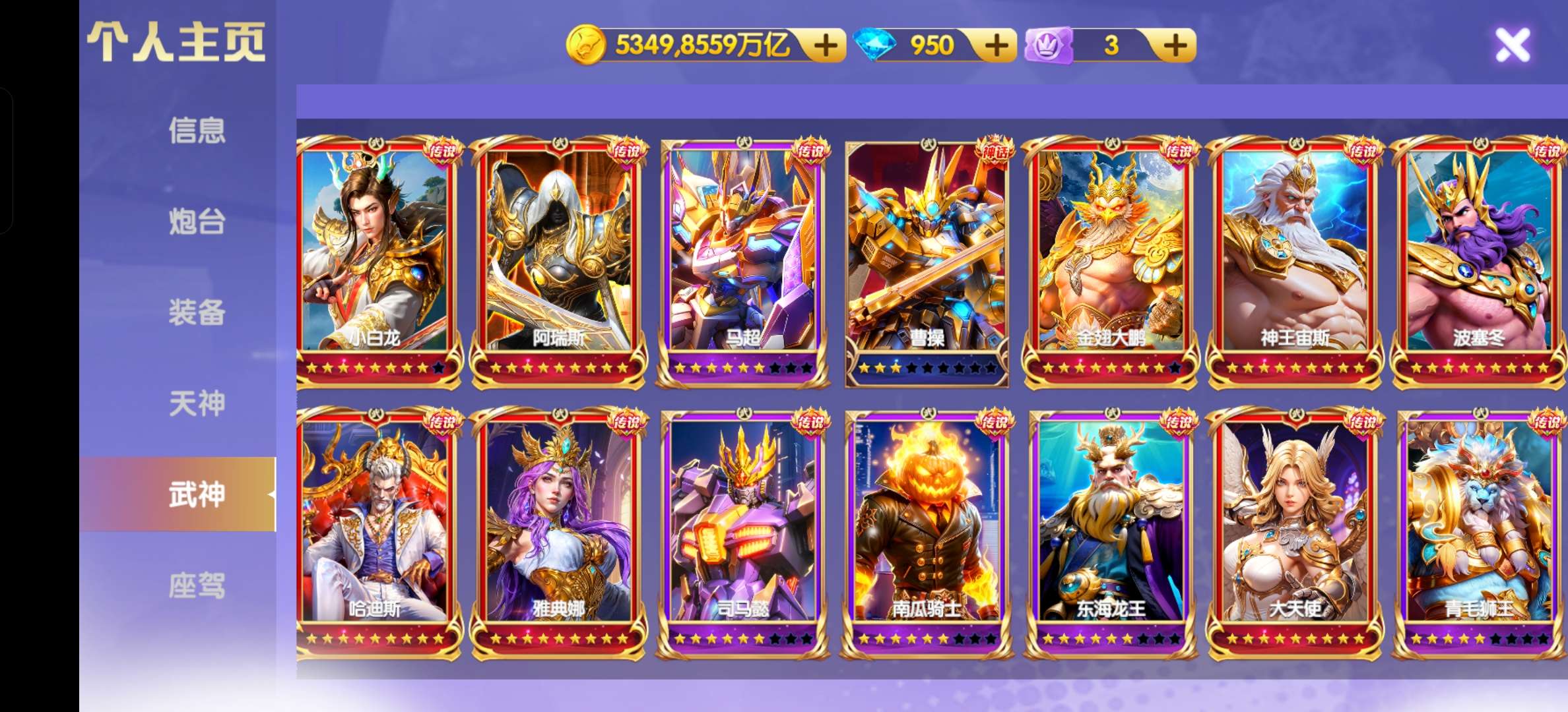 顶配5350京纯玩,破产发切号视频退200。4套9星羁绊,五福七星以上