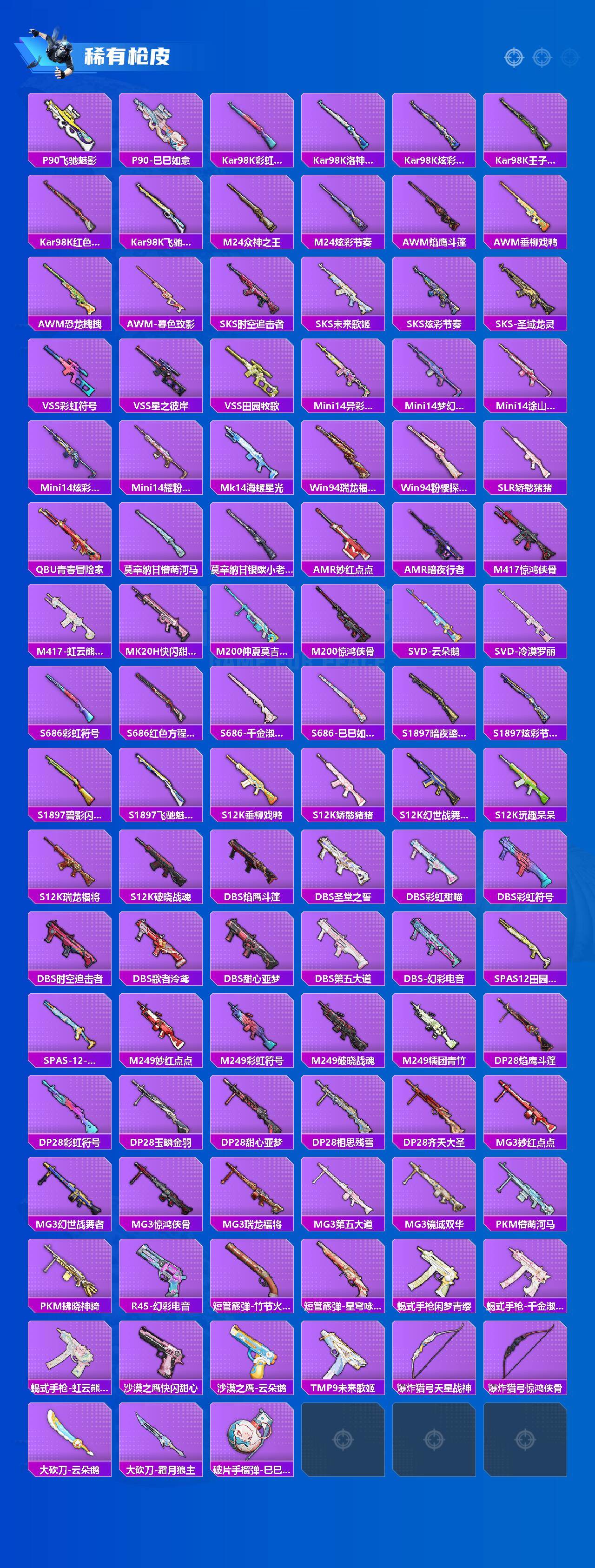 【HPYT8】213套装/枪械11/装备397/载具1/战备210/王牌印记17/热力值103516/五级AKM-绿萝繁花/七级SCAR-L-青春物语/五级SCAR-L-锦绣绵绵/七级M416-风花雪月/五级UMP45-量子极限/五级Kar98K-巳巳如意/四级AA12-G-萌骑幻想/七级M249-猪猪侠/五级DP-28-豹影疾电/七级MG3-洛神天依/五级MG-36-沧焰双生/套装-小丑鱼/角