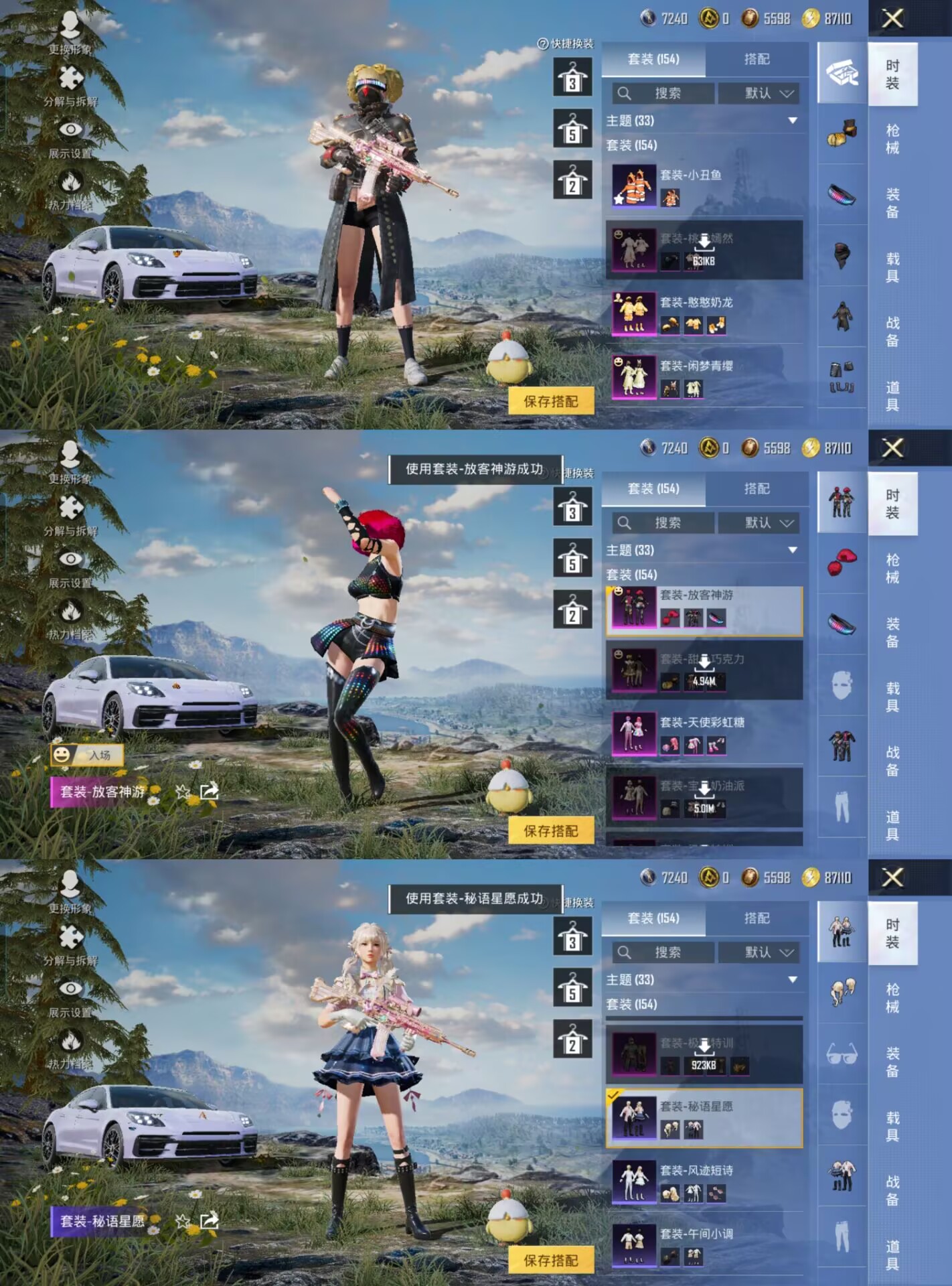 DSH1986【关注店家每日捡漏价100个】【男身上素材身法号 8粉 5特 2车 狂沙舞者 小丑鱼 极限特训 巧克力三姐妹 发光眼罩 熔岩游骑兵口罩】安卓Q-2载具8粉装5特效枪7热门154套装207枪皮 64511热力值 15印记 历史传奇王牌14星 【2载具】 保时捷Panamera(星辰紫) 合金龙骨蓝色 【8粉装】 憨憨奶龙 宝贝奶油派 天使彩虹糖 甜心巧克力 桃粉嫣然 闲梦青缨 放客神