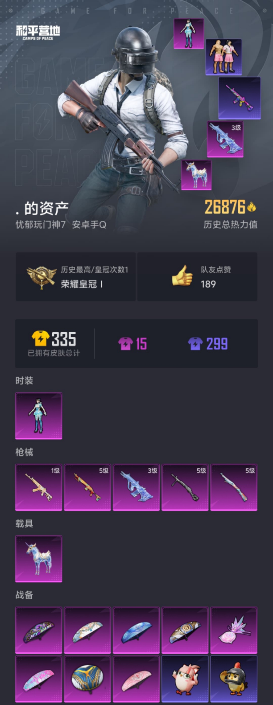 可二次实名【AUG星梦奇缘5特效枪1载具1粉装 秒换绑不用等】 安卓Q区-26876热力值-64套装-97枪皮 【1载具】 星梦玉骢【1粉装】 角色-异瞳寒姬【5特效枪】 AUG-星梦奇缘(3级) Mk14-福马献瑞(5级) ACE32-萌骑漫游(1级) Kar98K-巳巳如意(5级) DP-28-豹影疾电(5级)【118热门】 英勇保护者 M416-快乐主宰 SS27特训 SS22特训 SCA