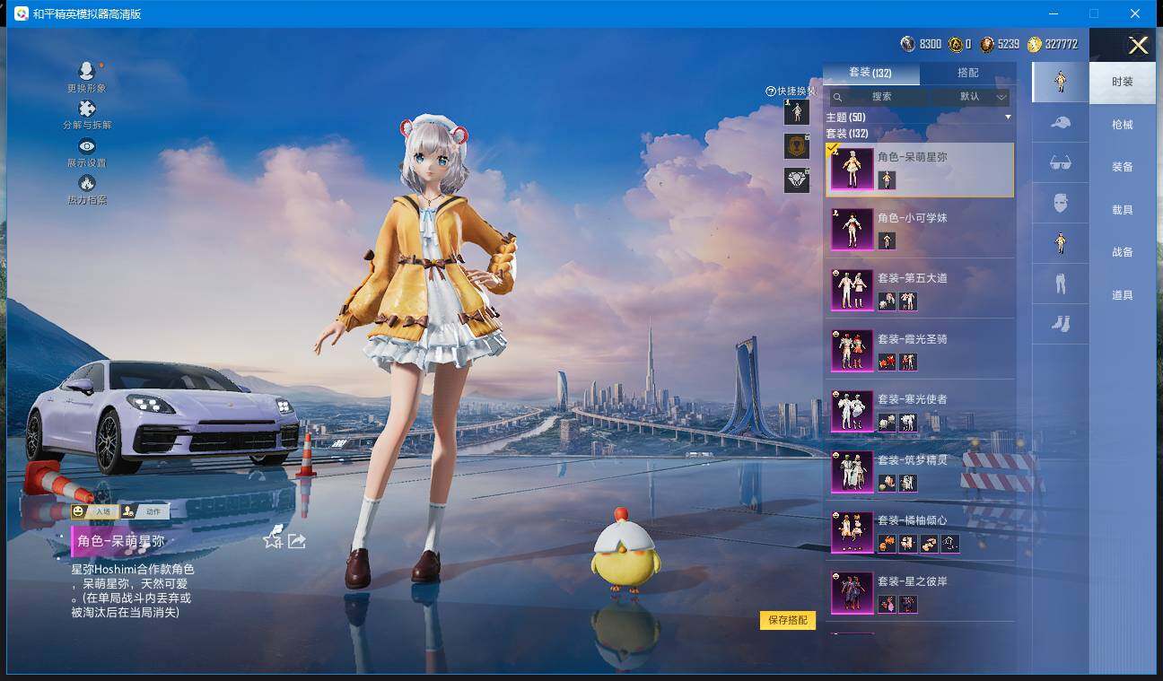 时装数: 132 载具数: 1 枪械数: 193 战备数: 152 热门装扮: 梦幻火箭(新101),金曜白虎,鹰眼刺客,星之彼岸,筑梦精灵,橘柚倾心,霞光圣骑,寒光使者,奶芙汪汪,第五大道,小可学妹,呆萌星弥,未来歌姬,茉莉星,万古烈焰,宙之时溯,星云暗核,圣堂之誓,花灵 载具: 保时捷Panamera(星辰紫) 稀有枪皮: AKM-星际浪客(七级),M416-心之恋语(六级),AUG-星之彼