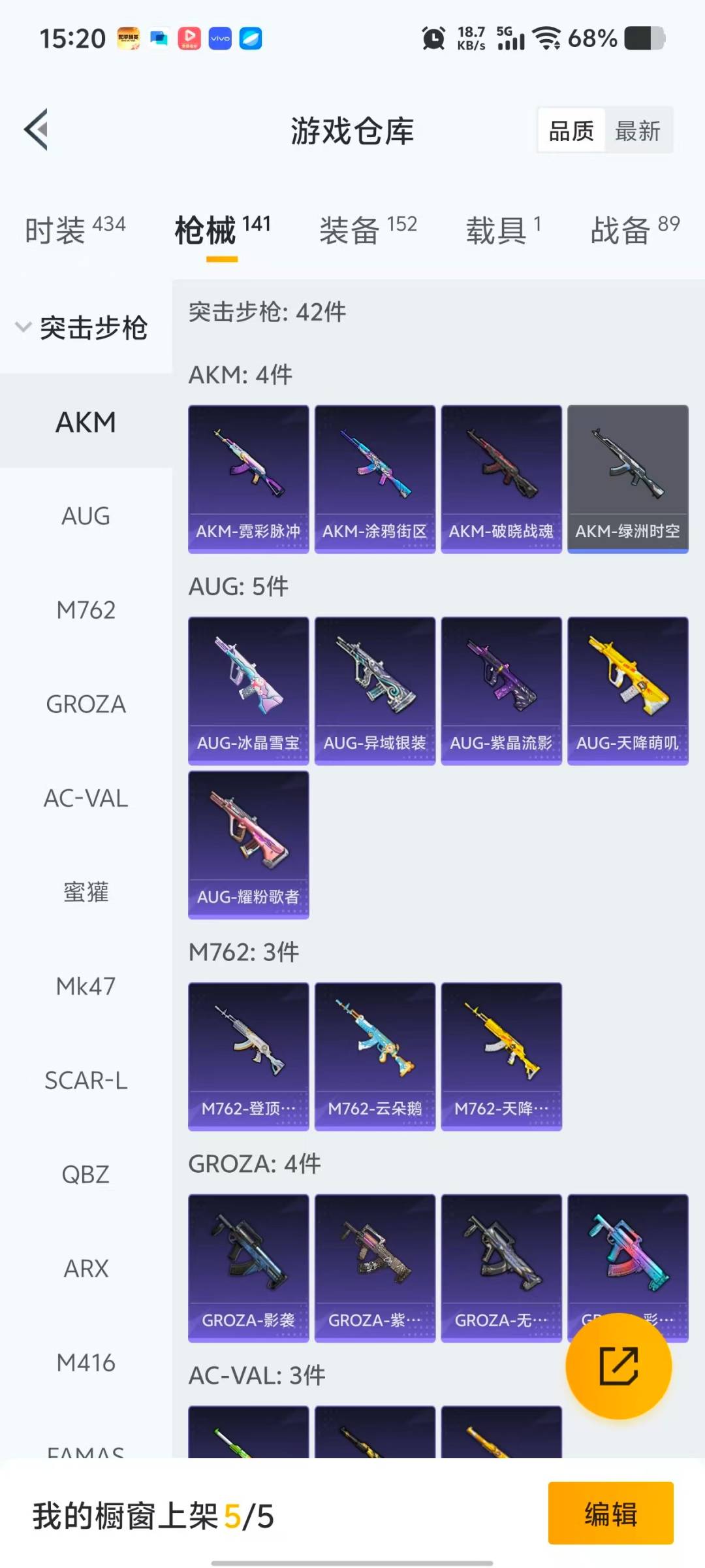 [17398815]实名: 可修改 时装数: 402 载具数: 1 枪械数: