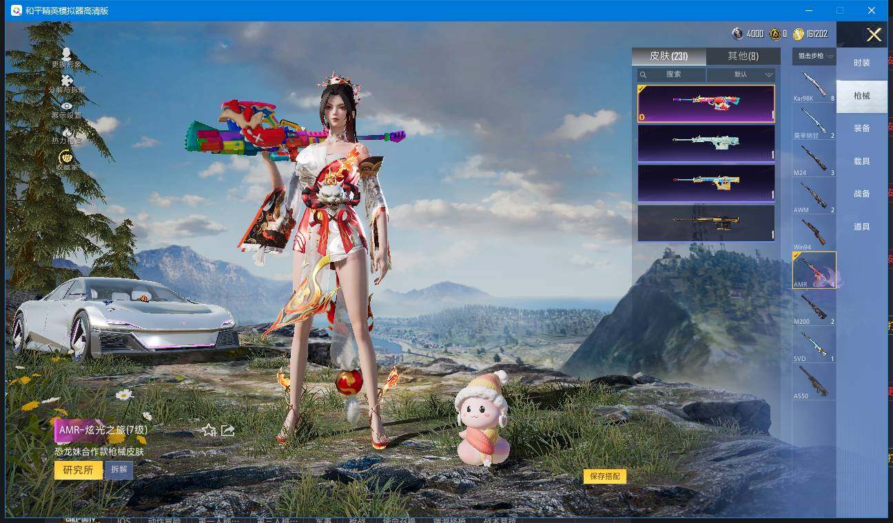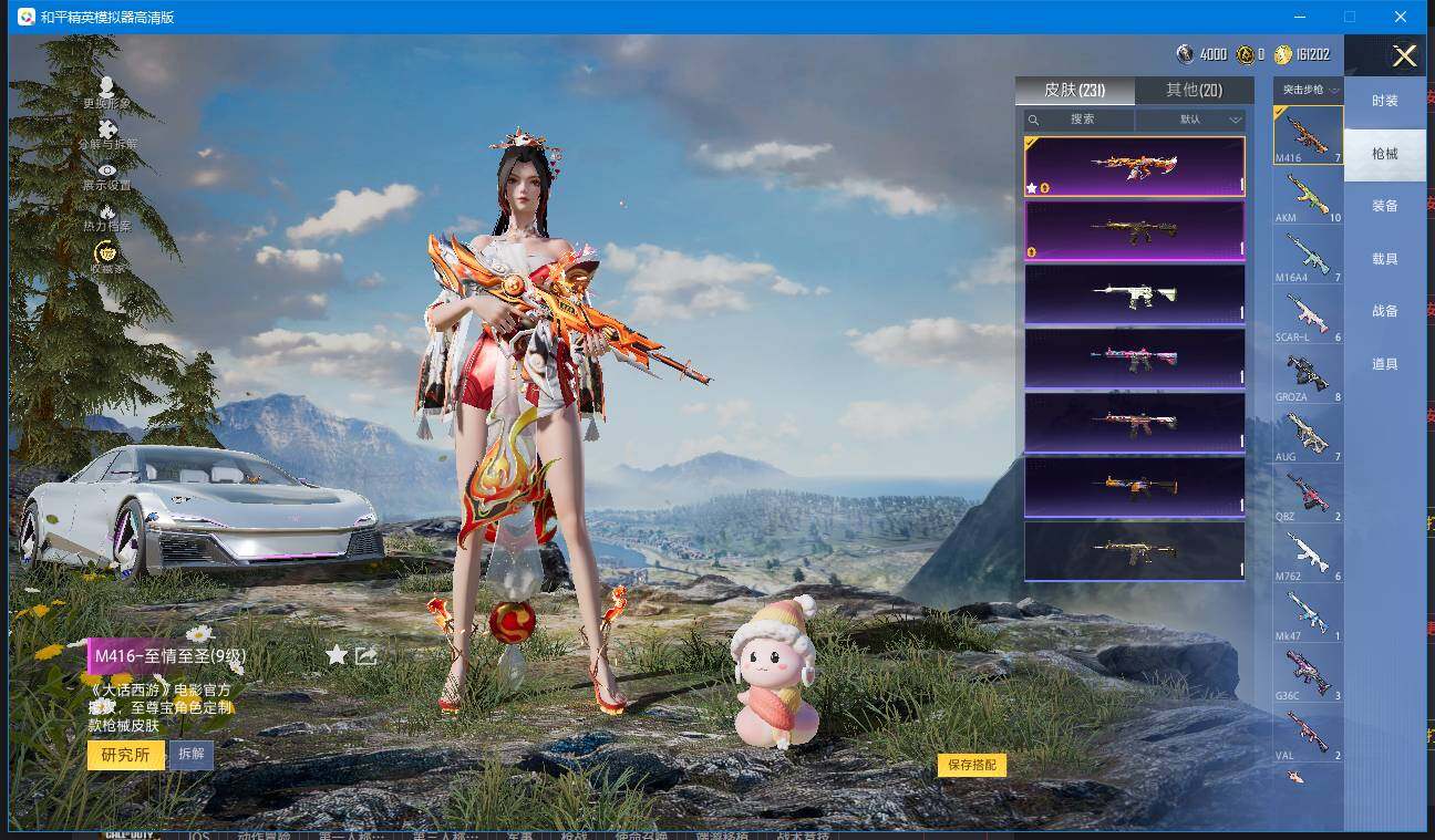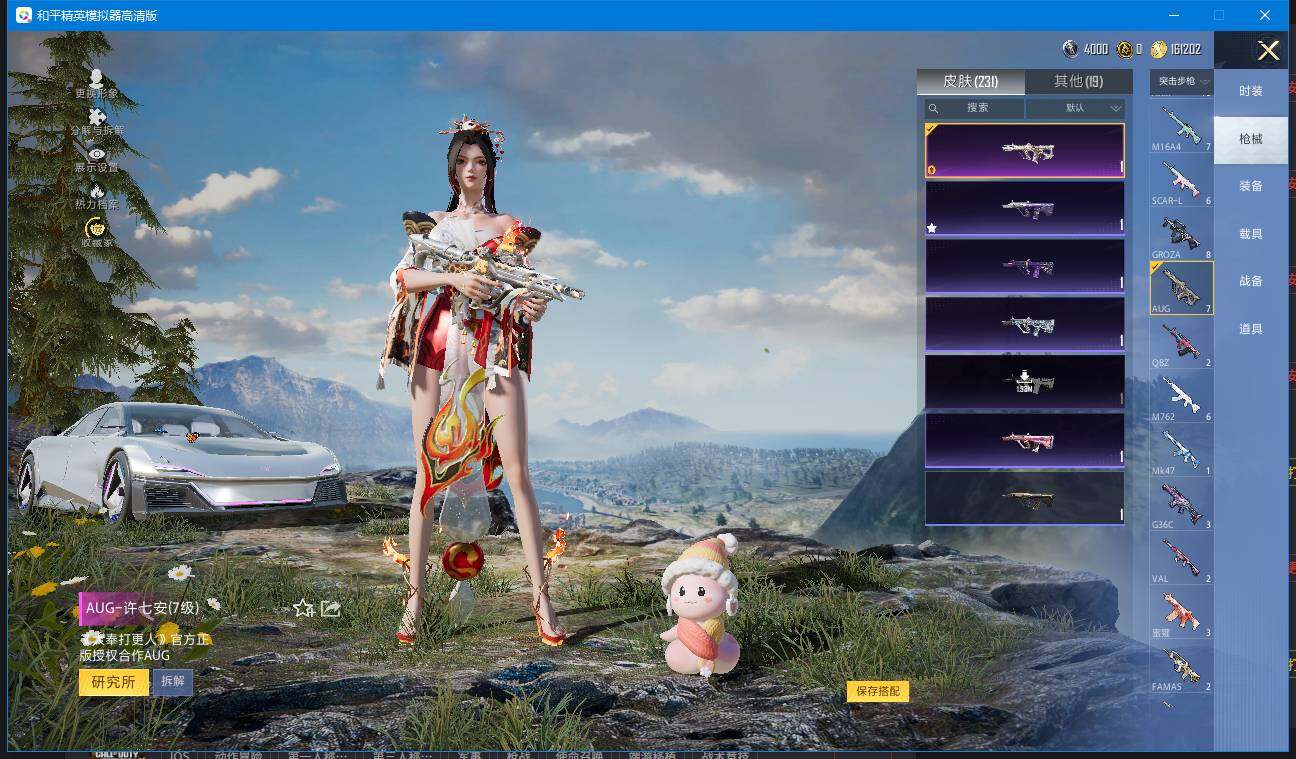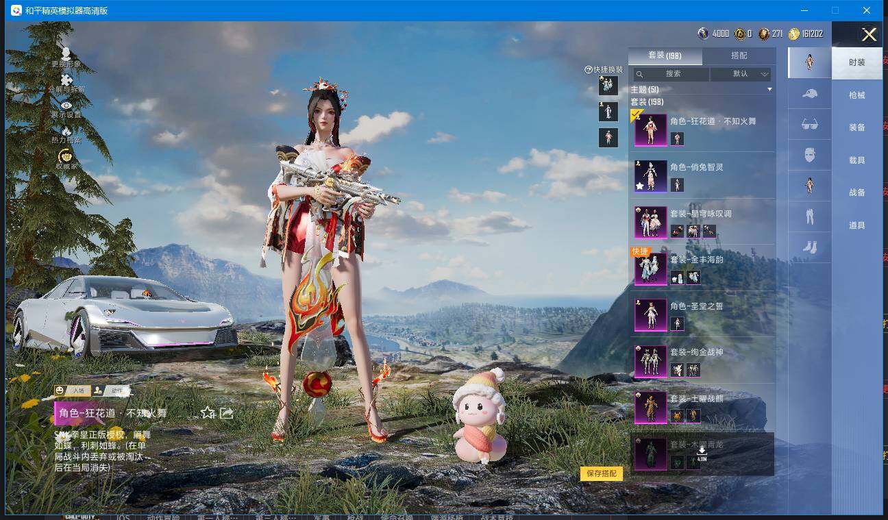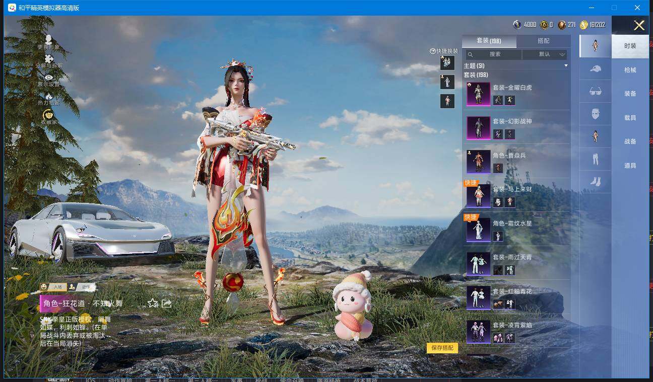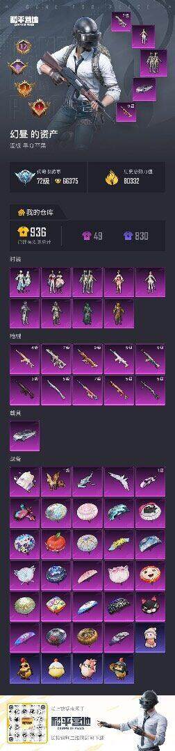 时装数: 840 载具数: 1 枪械数: 231 战备数: 190 热门装扮: 幻影战神,浪漫波比,土曜战麒,迅捷狂鲨,木曜青龙,金曜白虎,鹰眼刺客,都市猎人,狮王雄心,恒星战甲,绚金战神,大橘为重,软萌银虎,神秘黑猫,圣堂之誓,金丰海韵,狂花道·不知火舞,星穹咏叹调 载具: 星河领航(磐石银) 稀有枪皮: AKM-绿萝繁花(五级),SCAR-L-锦绣绵绵(五级),M416-五爪金龙(三级),M