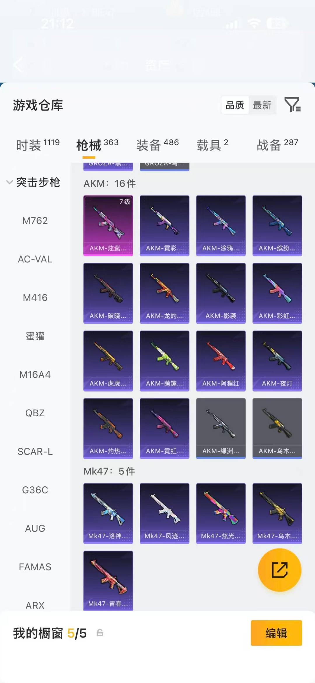 [17416509]实名: 可修改 时装数: 1065 载具数: 2 枪械数: