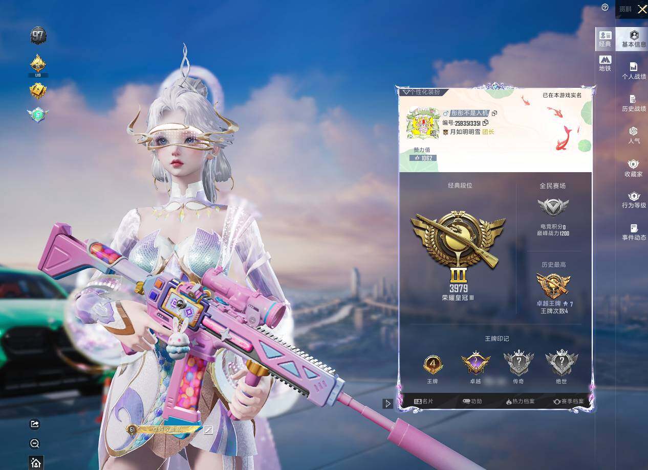 苹果 手Q-13粉装-8特效枪-2载具-1粉色飞行器-57075热力值-4王牌印记-123套装-179枪皮